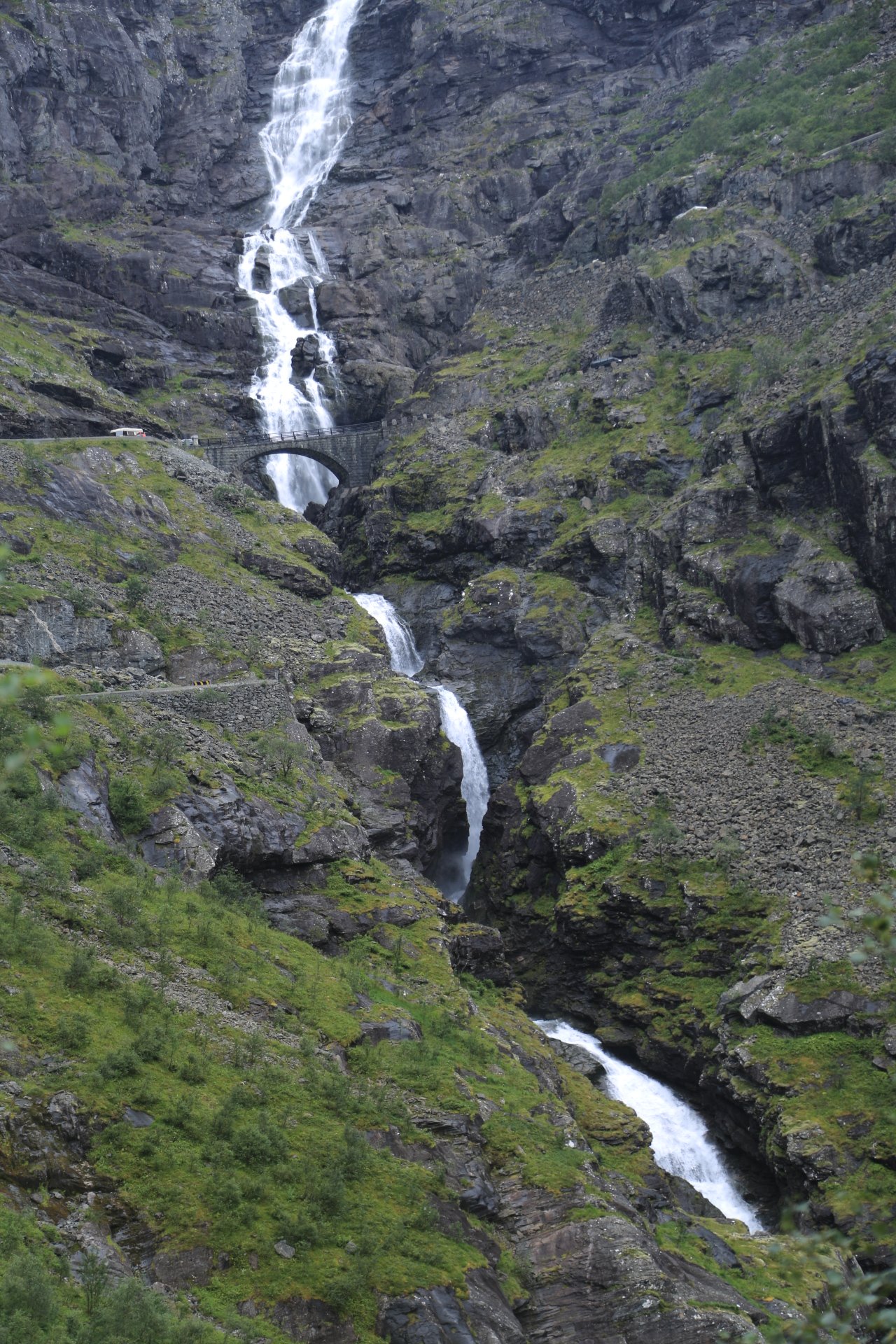 Am Trollstigen selbst ist uns zu viel Rummel, so das wir oben erst gar nicht anhalten, sondern gleich über engen Serpentinen Abwärts fahren.