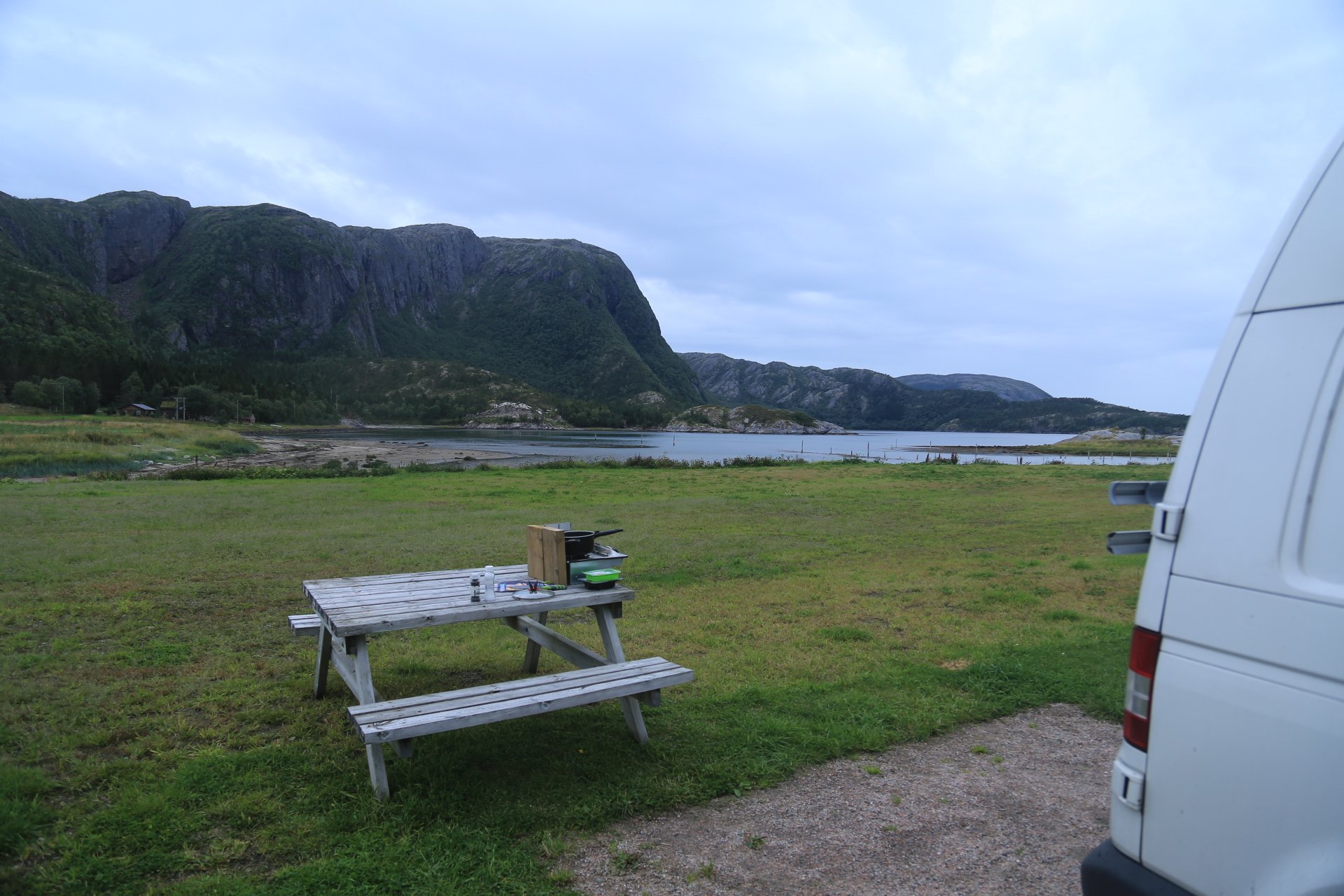 Heute war erst einmal langes ausschlafen angesagt, was zur Folge hatte, das wir die letzten auf dem kleinen Platz waren.Entsprechend spät sind wir losgekommen, was nicht weiter schlimm ist, da wir keine besonderen Ziele für heute haben.So ist unser erster Stopp in Kristiansund wo es bei einem kleinen Spaziergang neben einen Kaffee noch Shrimps frisch vom Boot gibt.Danach geht es weiter grob Richtung Trondheim wo wir ein Platz für die Nacht finden und leckere Spaghetti mit viel Knoblauch und Shrimps brutzeln. Schlauerweise vor dem Bus, so das der Geruch nicht an allem haftet.