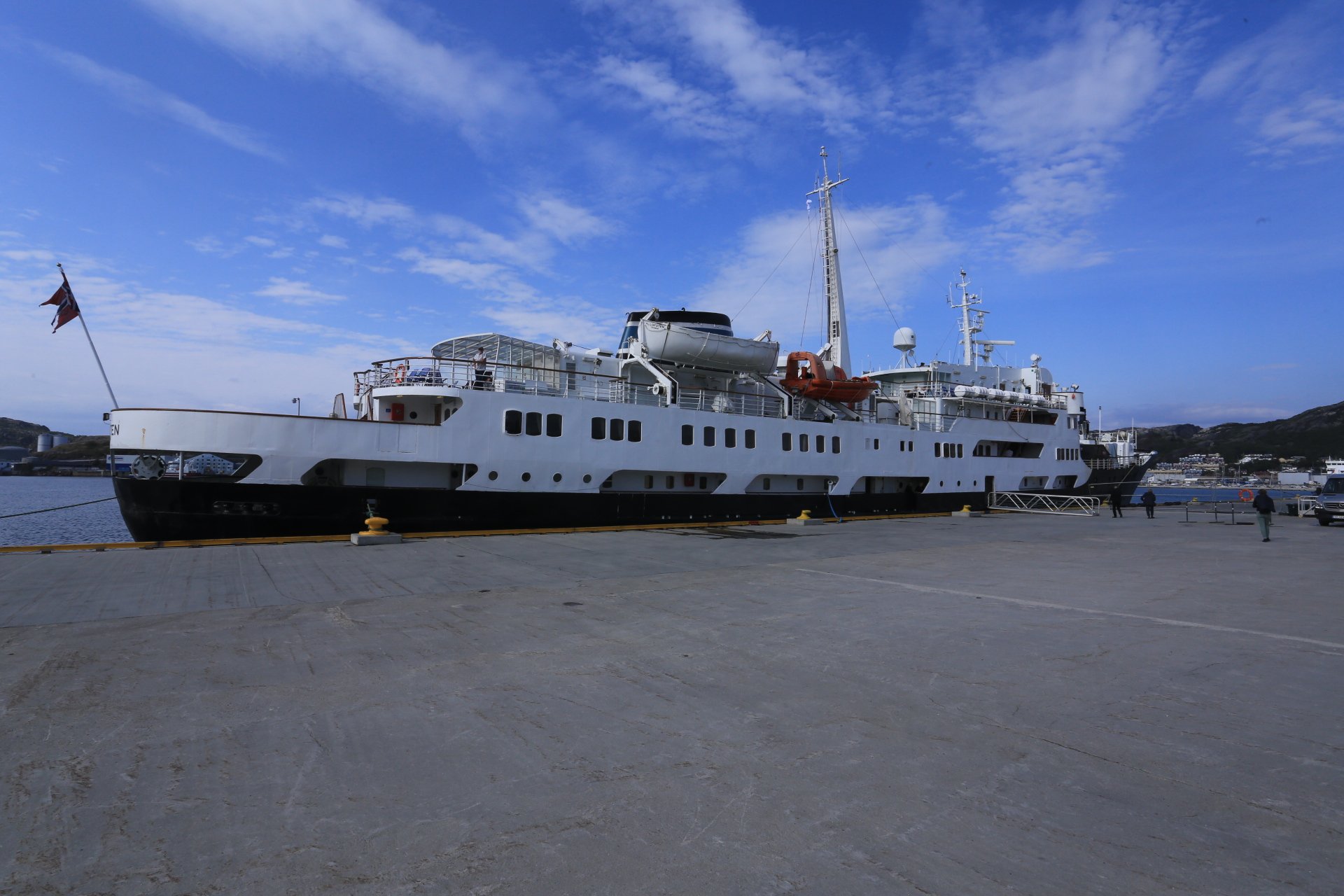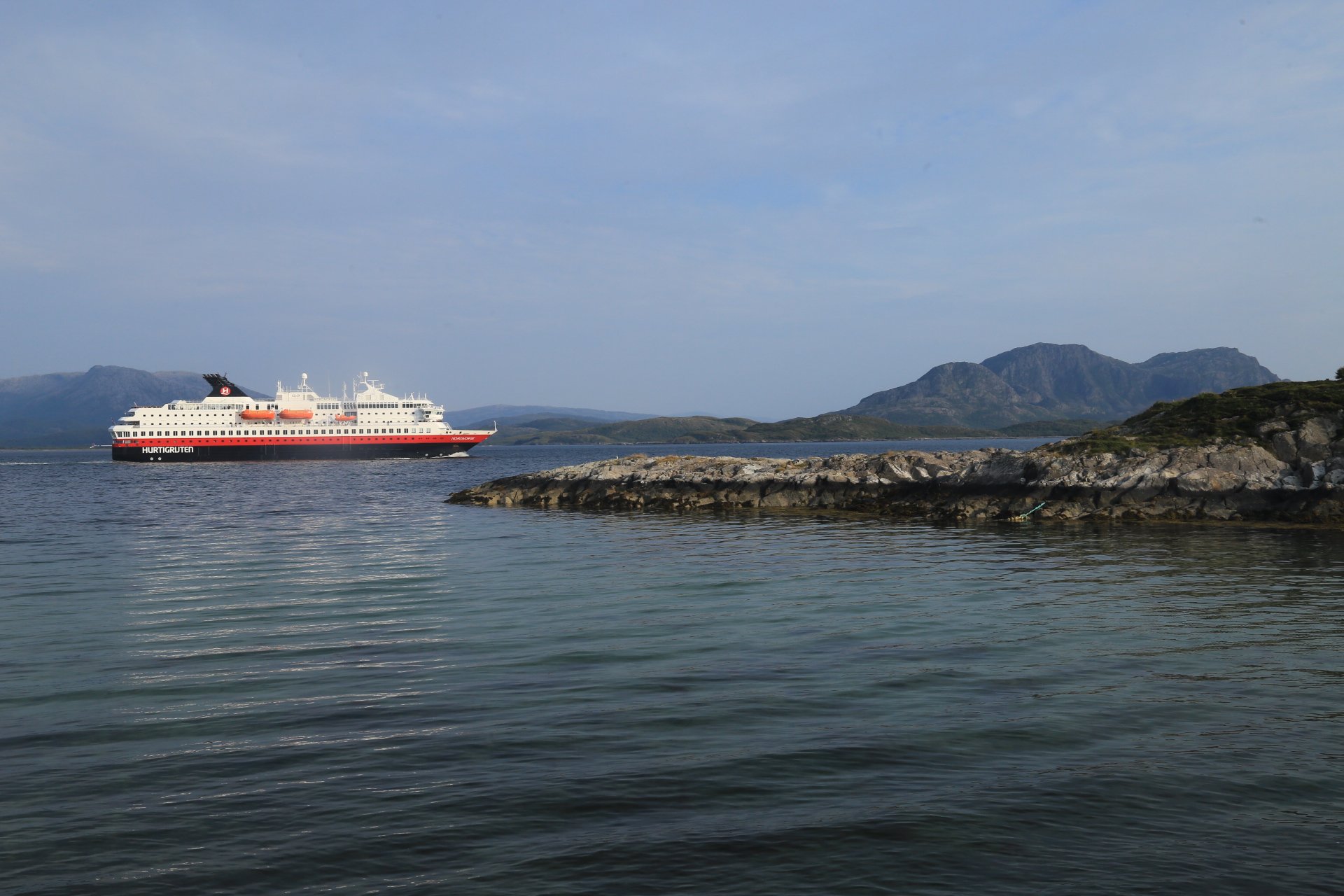 Zum Abendprogramm gehört hier das ein s Schiff der Hurtig Route vorbeischaut.