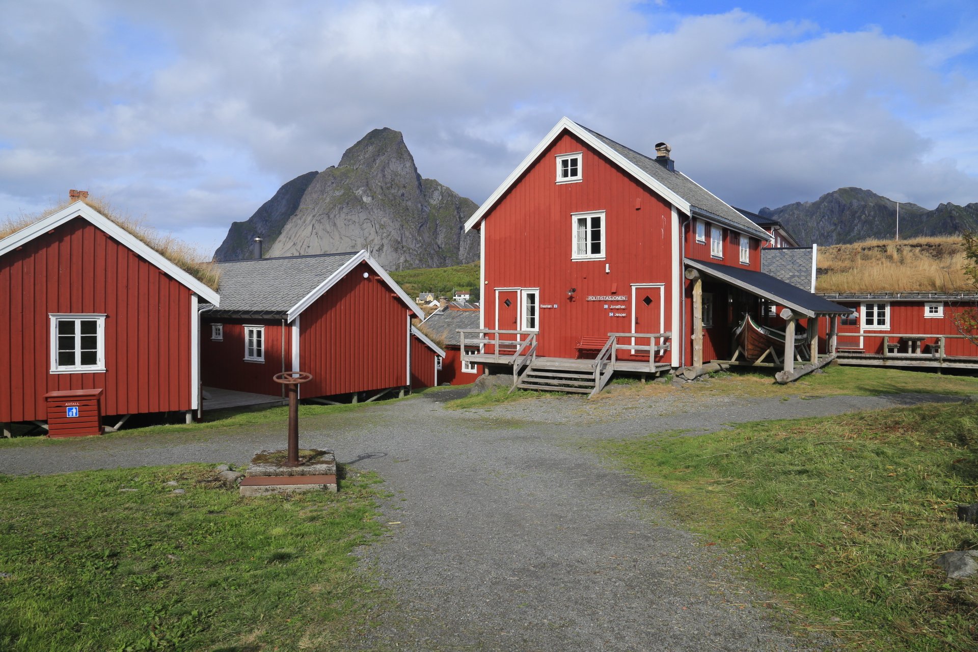 Heute ist das Wetter wie die Lofoten selbst, rau. Wolkenverhangen und windig. Aber irgendwie gehört es wohl dazu.Wir machen uns auf den Weg zum Wikinger Museum, vorbei an der Brodnes Kirke