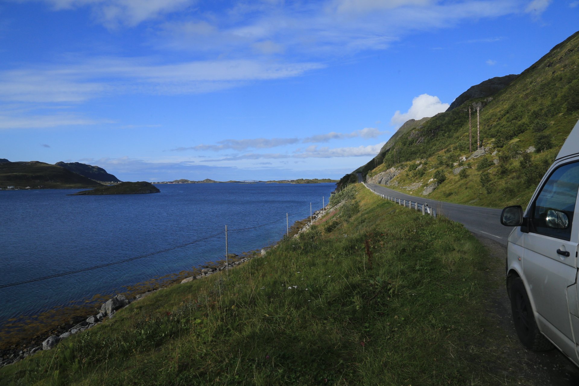 Bei strahlenden Sonnenschein verlassen wir dann Bodo, auf geht es zu den Lofoten.