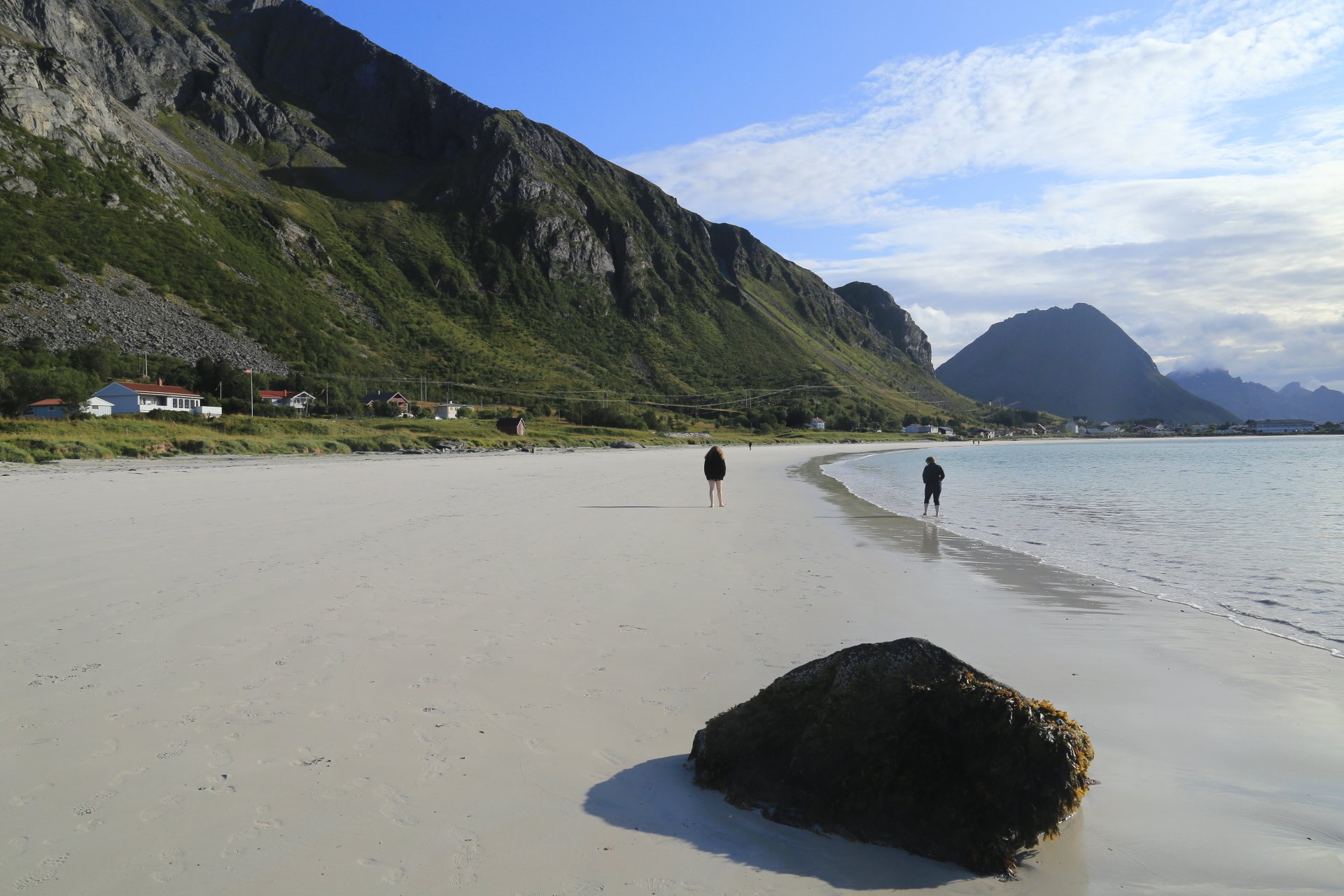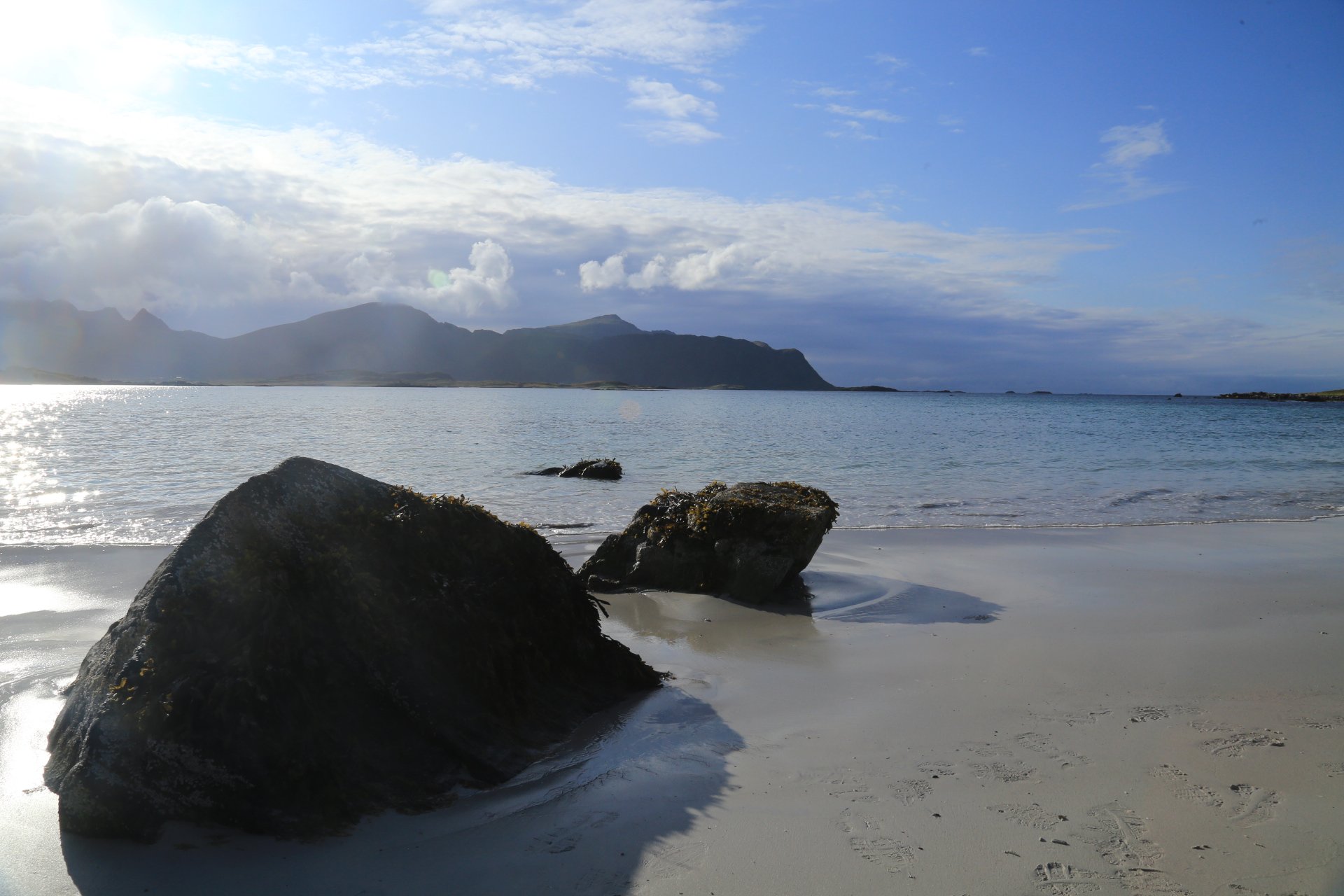 Unser erster Tag auf den Lofoten hat gemütlich bei Sonnenschein und blauen Himmel angefangen. Ein wenig Die Zeit vertrödeln und ein wenig versucht zu Angeln. Doch die 30 Jahre alte Angelschnur war leider nicht mehr allzu stabil. Bis an den Felsen auf den ich stand habe ich den Fisch bekommen, dann riss die Schnur und weg war der Fisch. Als danach auch noch die Schnurr beim auswerfen allein durch das Gewicht meines Blinkers riss war es genug. Erst mal zamräumen und weiter und unterwegs mal eine neue Schnurr kaufen.