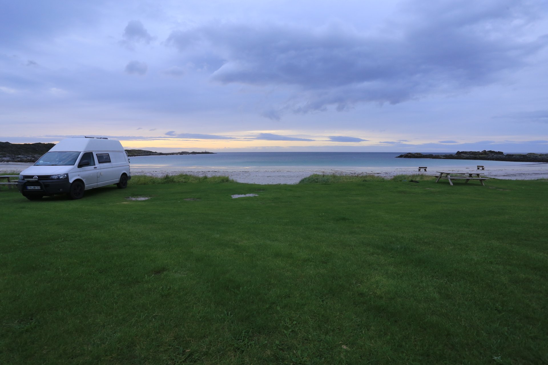Da wir drei alle etwas durchgeschwitz waren kam für heute nur ein Campingplatz mit Duschen in Fragen, was wir unterwegs bedauert haben, da wir einen wunderschönen Stellplatz mit Toiletten an einer großen Sandbucht auf dem Weg entdeckt haben. Normal waren wir sofort dort geblieben. Zumal die Campingplatz dicht hier oben sehr gering ist.
