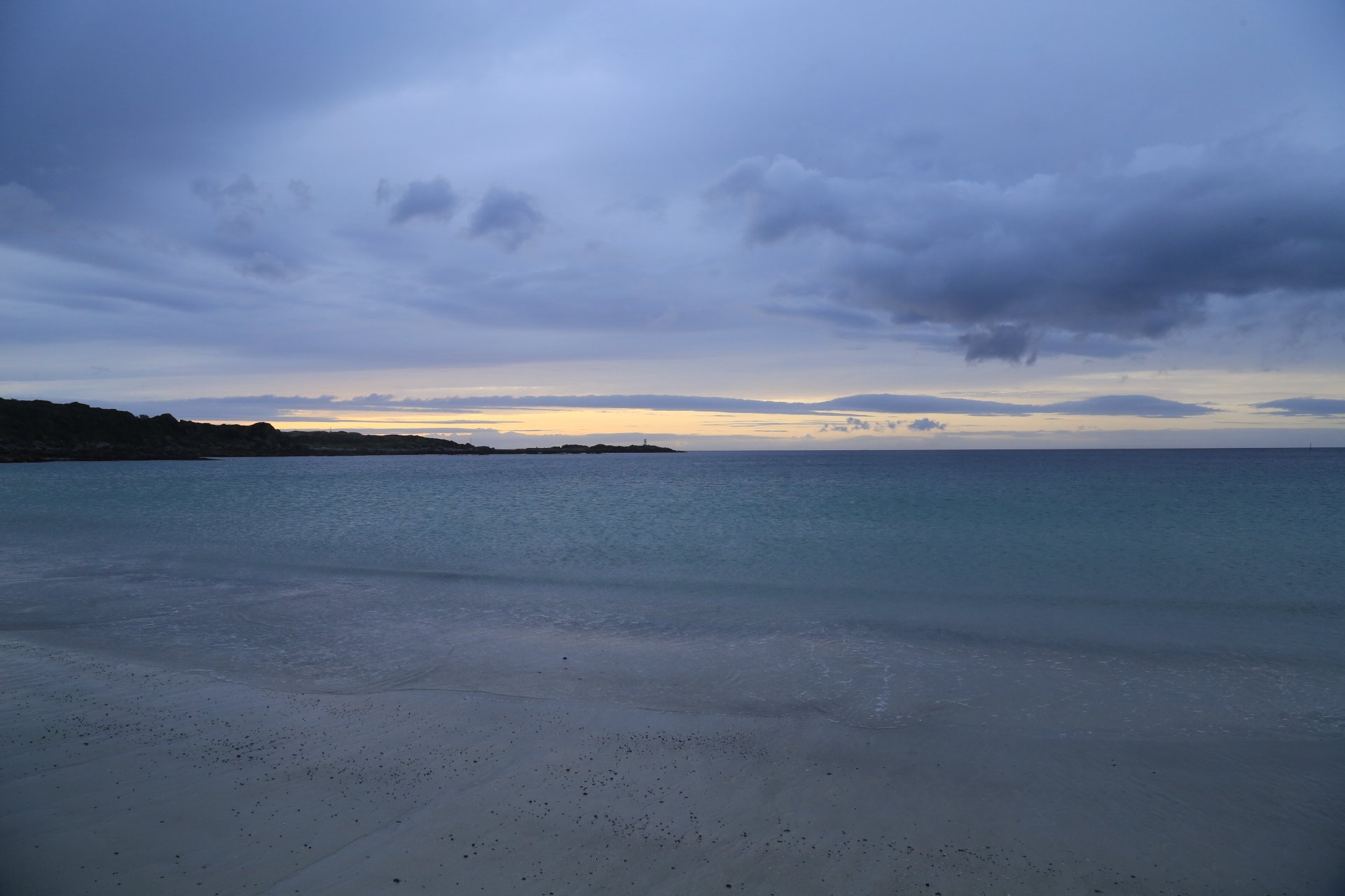 Danach geht es auch schon weiter einen Platz für die Nacht zu finden. Da an der Ostküste schwarze Wolken hängen und die Westküste ziemlich freundlich aussieht beschließen wir den geplanten Platz aufzugeben und statt dessen Richtung Westen zu fahren. Bald werden wir in einer kleinen Sanbucht fündig.
