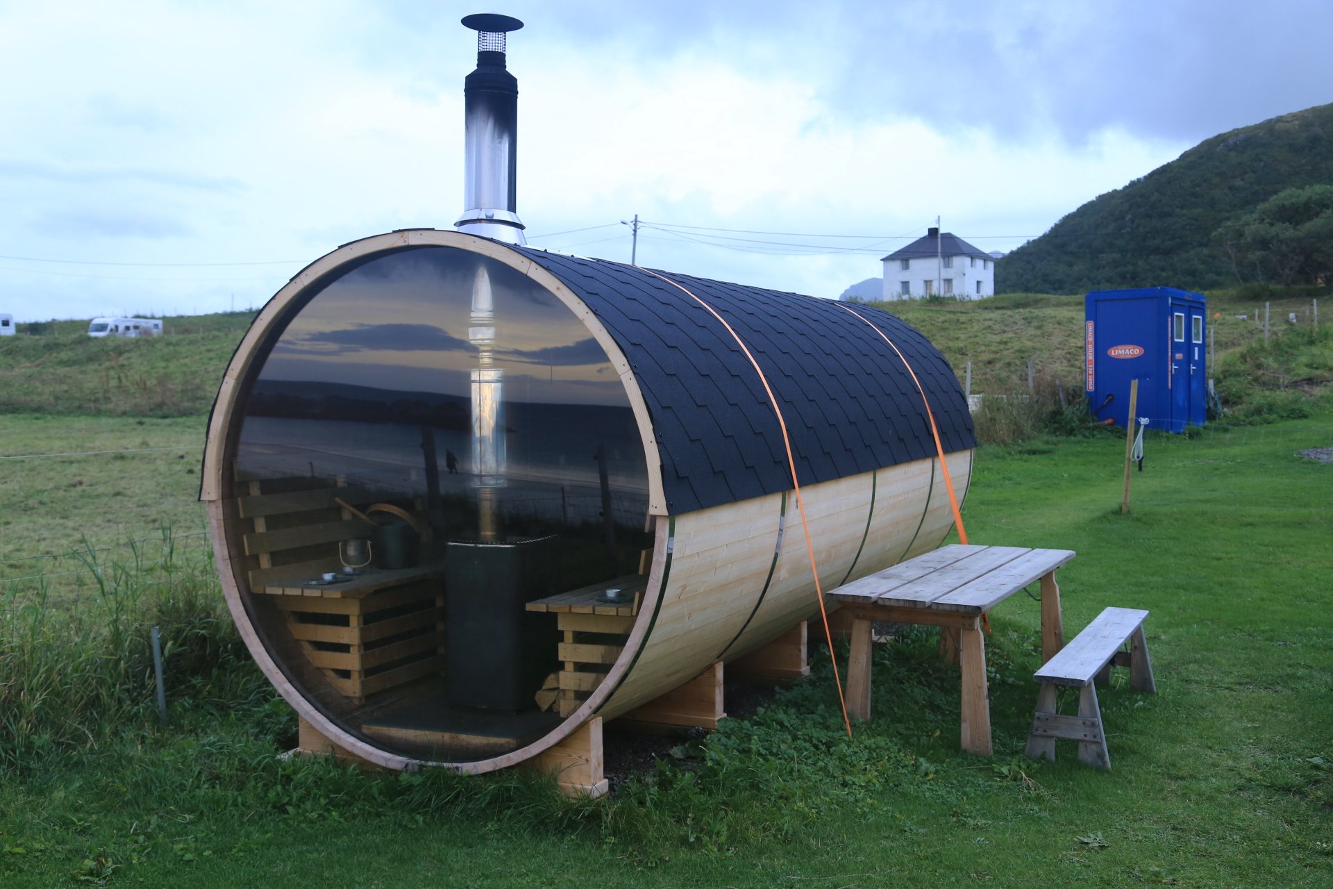 Sollte es zu kalt werden steht auch noch ein Saunafaß mit Aussicht über die bucht zur Verfügung.