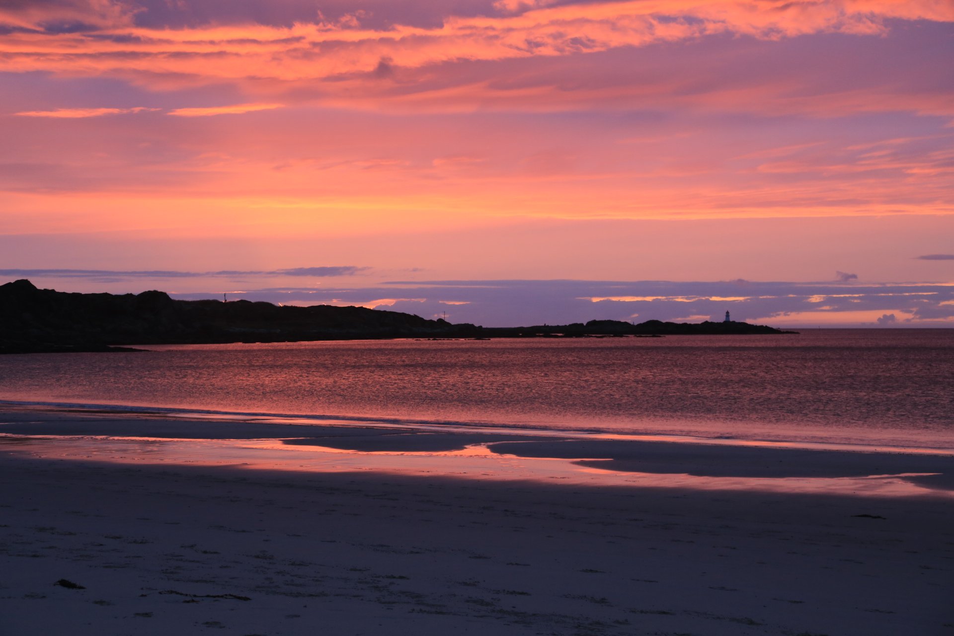 Ein langer Tag nimmt sein schönes Ende, ich sitze an einen Lagerfeuer mit Blick über den Fjord, genieße ein Bierchen und Chips.