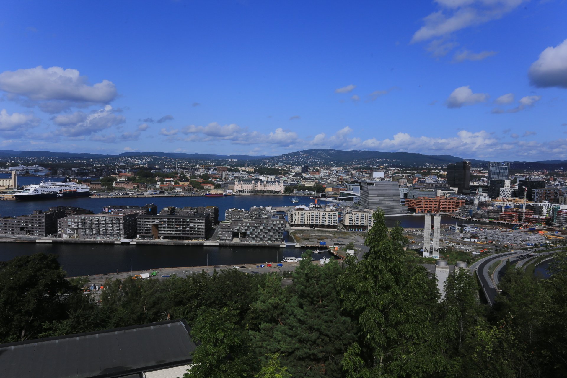 Heute war erst einmal ein wenig Oslo angesagt. Vom Ekeberg aus, auf dem der Campingplatz liegt, hat man einen fantastischen Rundblick über Oslo und den Hafen.