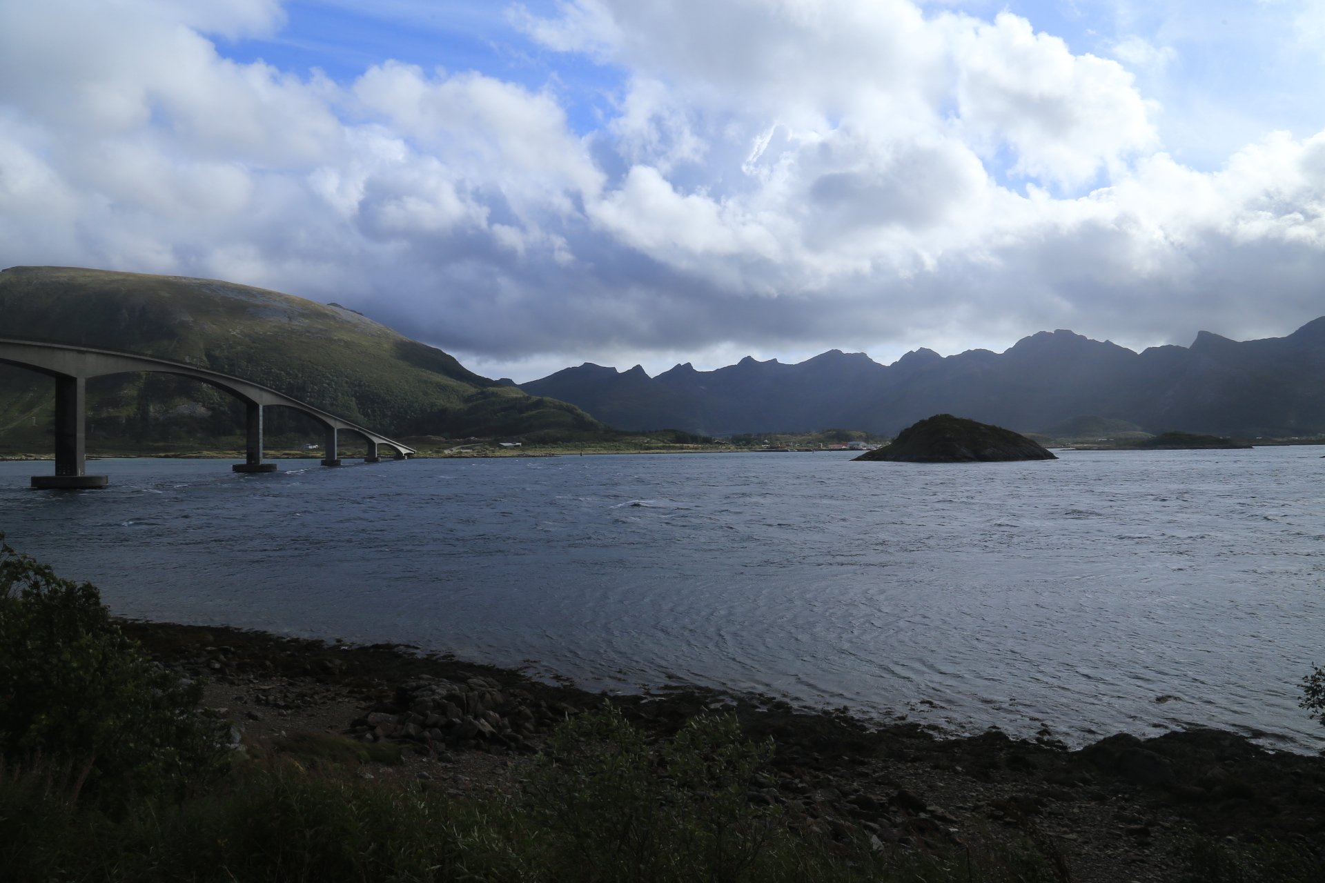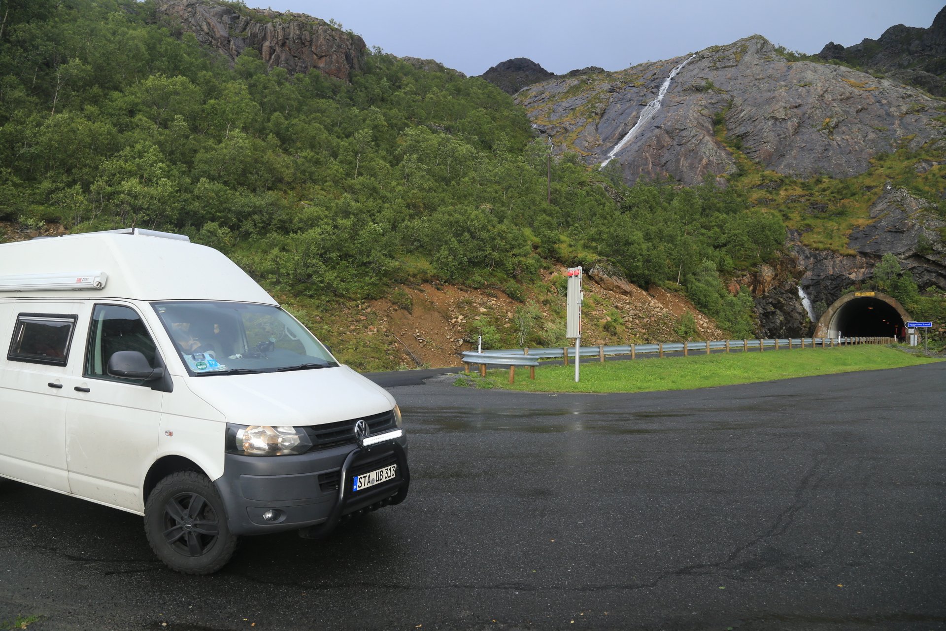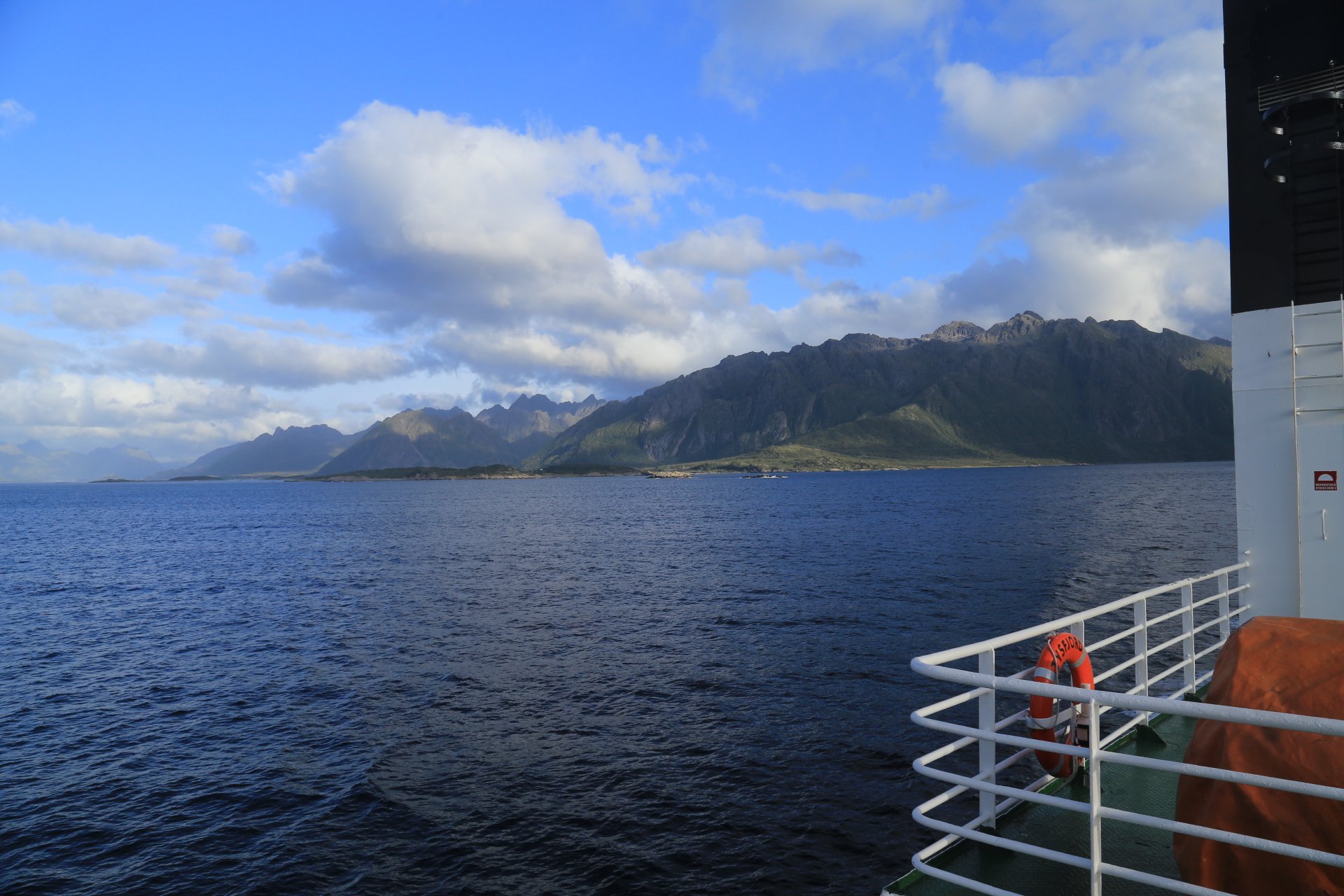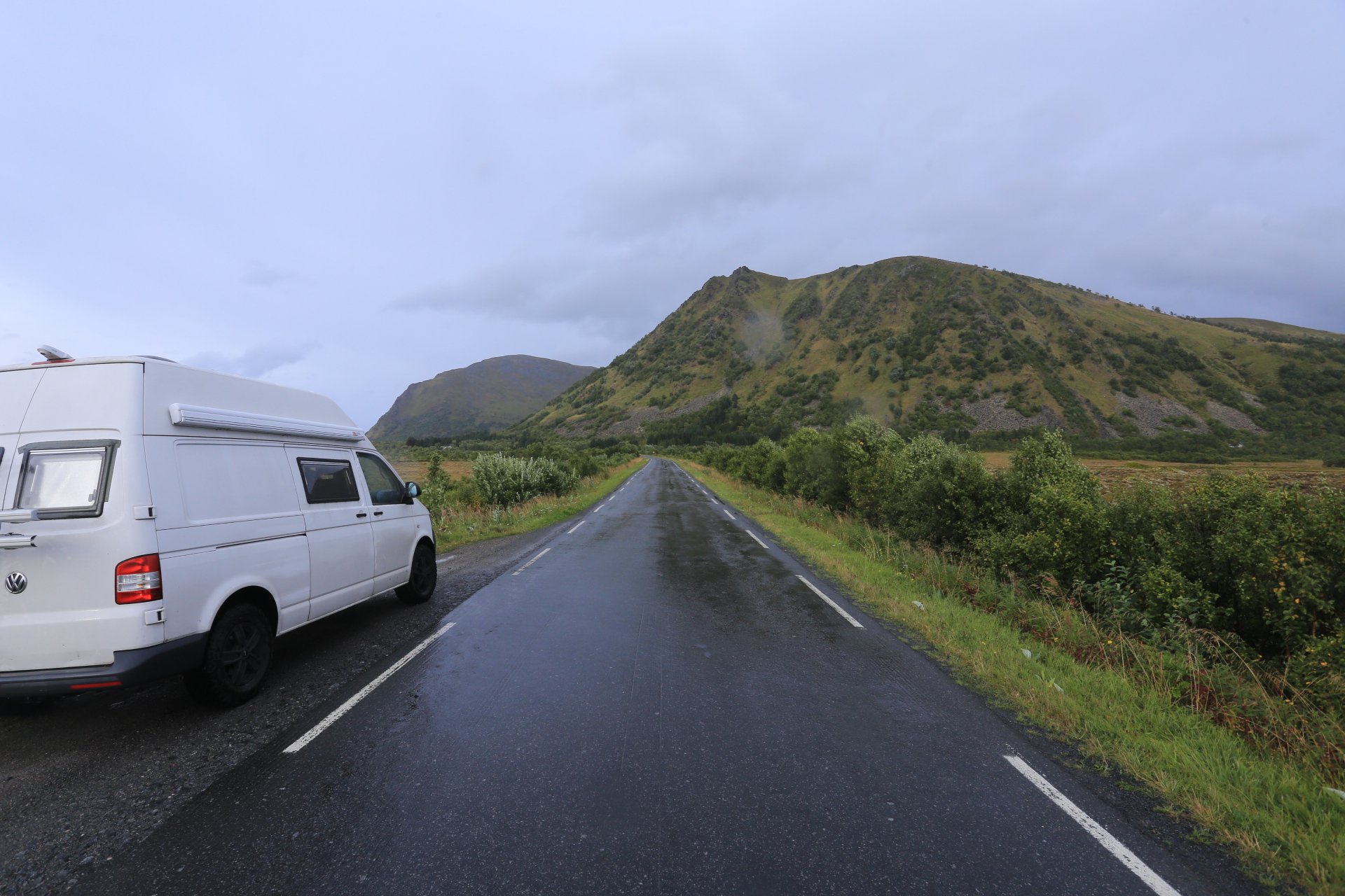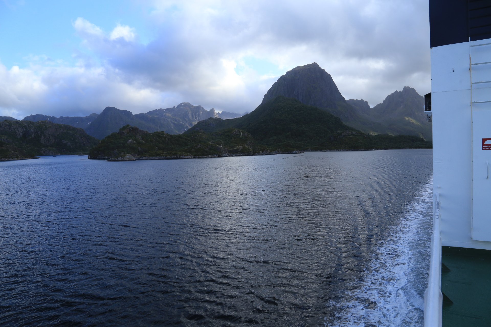 m Ende der kleinen Straße mündet diese wieder auf die E10. Wir halten an und überlegen was wir weiter machen, zumal unser Staubi Durst hat und wir eine Tanke brauchen. Sollen wir 33km zurück nach Svolvaer? Weiter auf derE10, bis zur nächsten Tanke, 68km und dann einen Platz suchen? Hm… vor einen Kilometer war eine Fähre die zu den Vesteralen…. direkt nach der Fähre gibt es wohl eine Tanke… heute rüber, morgen ganz drauf nach Andenes, Mittwoch Whalewatching und am Donnerstag dann nach Narvik fahren wo am Abend unsere große mit dem Flieger landet. Das ist doch einmal ein Plan. mal schauen wann die Fahre kommt, MMotor an und den einen Kilometer zurück, und siehe da, die Fahre liegt da, die Klappe offen und wartet auf uns, nix wie hinein.