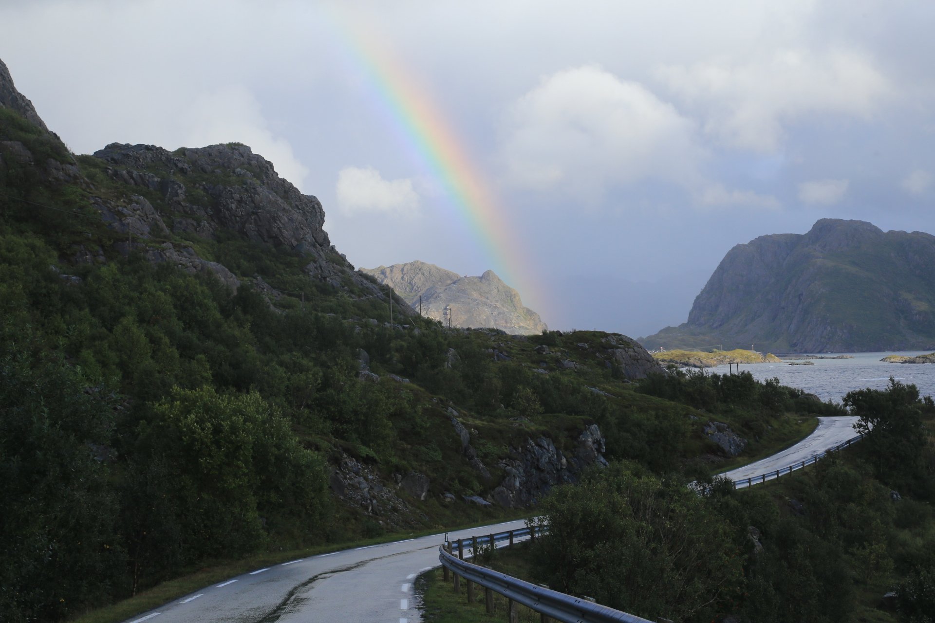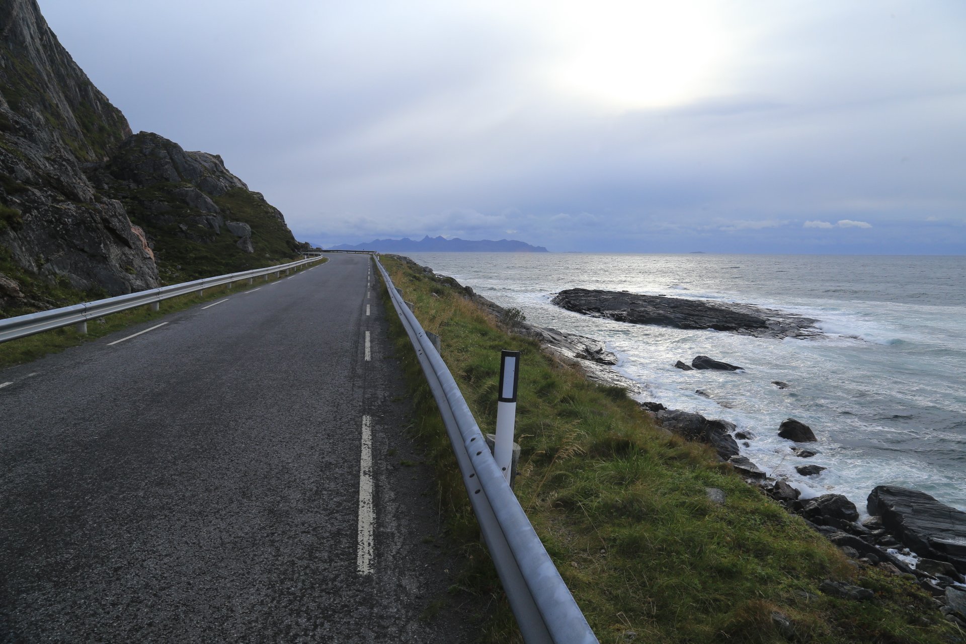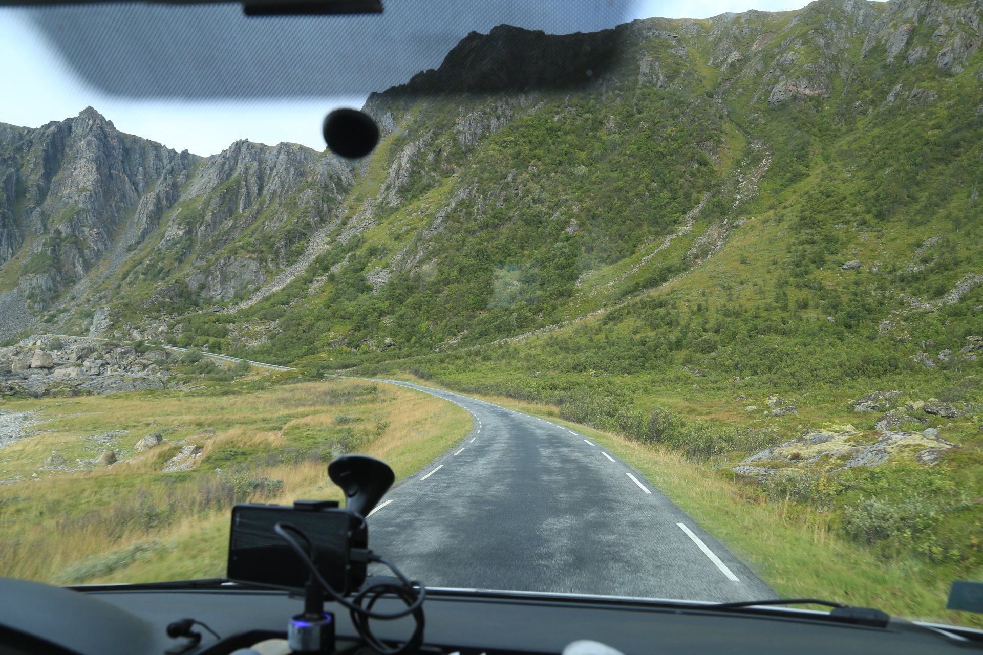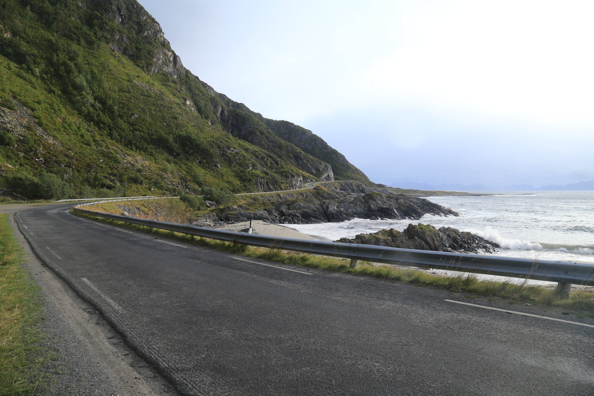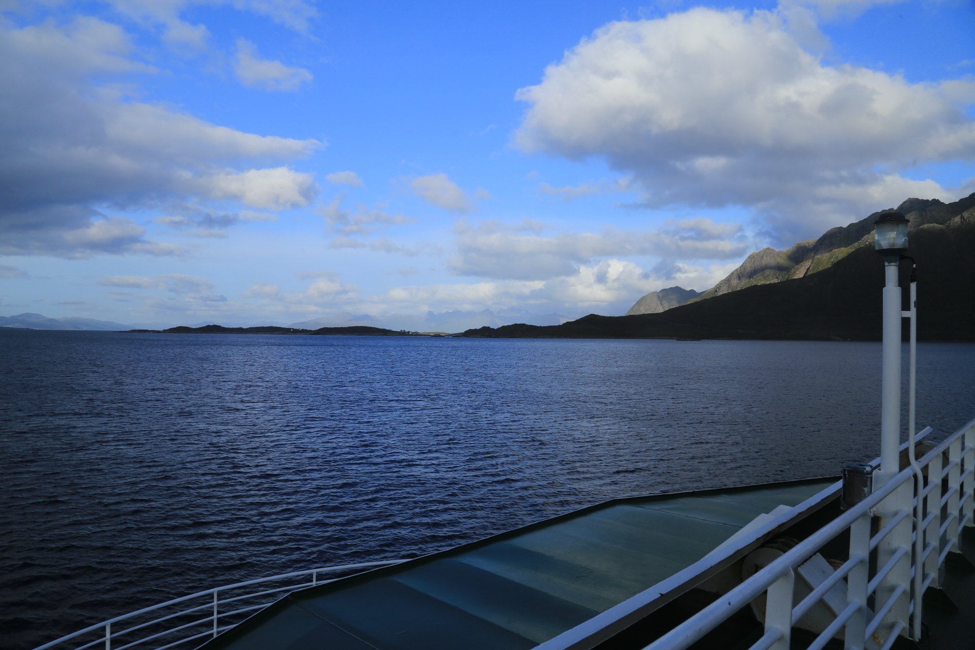 m Ende der kleinen Straße mündet diese wieder auf die E10. Wir halten an und überlegen was wir weiter machen, zumal unser Staubi Durst hat und wir eine Tanke brauchen. Sollen wir 33km zurück nach Svolvaer? Weiter auf derE10, bis zur nächsten Tanke, 68km und dann einen Platz suchen? Hm… vor einen Kilometer war eine Fähre die zu den Vesteralen…. direkt nach der Fähre gibt es wohl eine Tanke… heute rüber, morgen ganz drauf nach Andenes, Mittwoch Whalewatching und am Donnerstag dann nach Narvik fahren wo am Abend unsere große mit dem Flieger landet. Das ist doch einmal ein Plan. mal schauen wann die Fahre kommt, MMotor an und den einen Kilometer zurück, und siehe da, die Fahre liegt da, die Klappe offen und wartet auf uns, nix wie hinein.