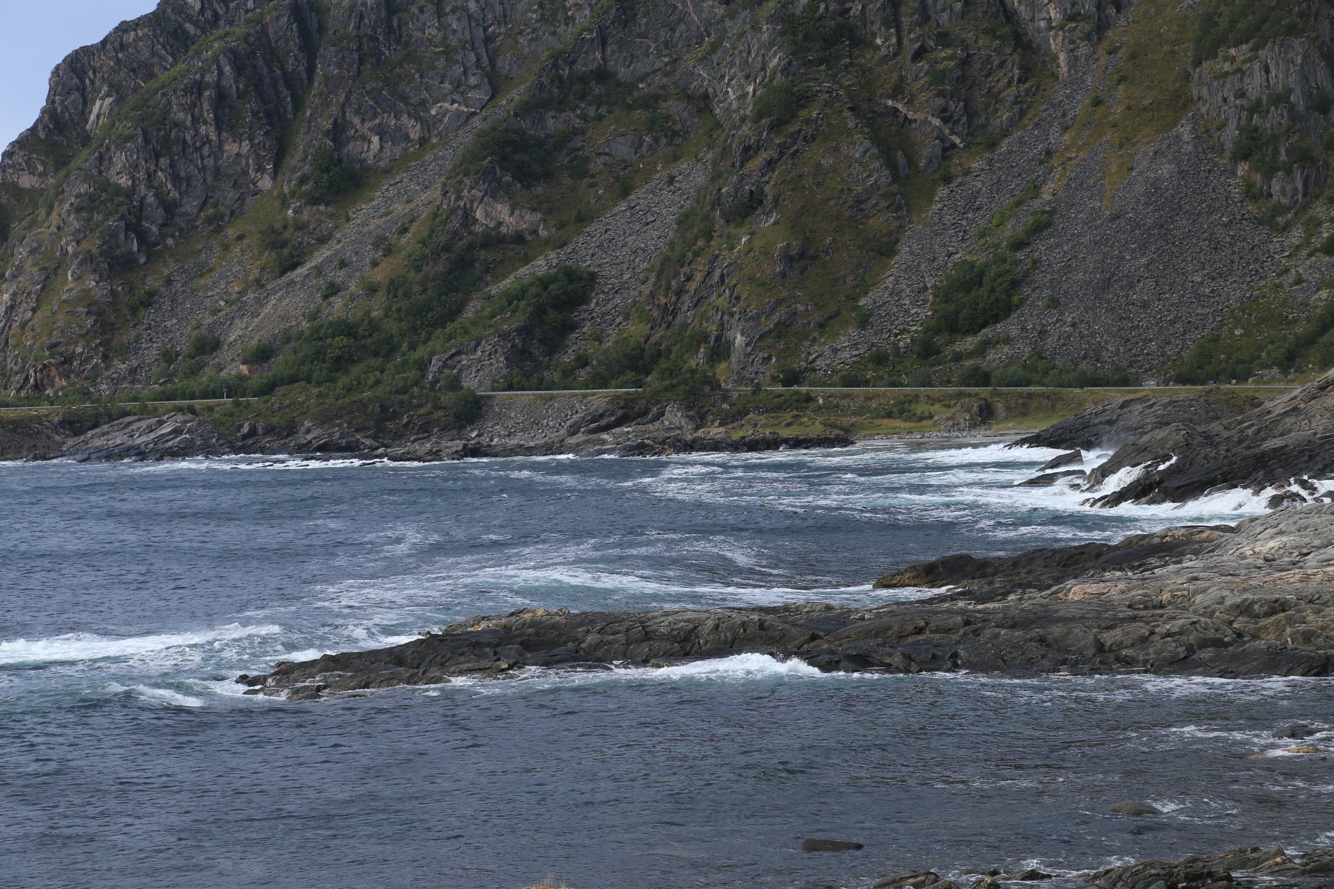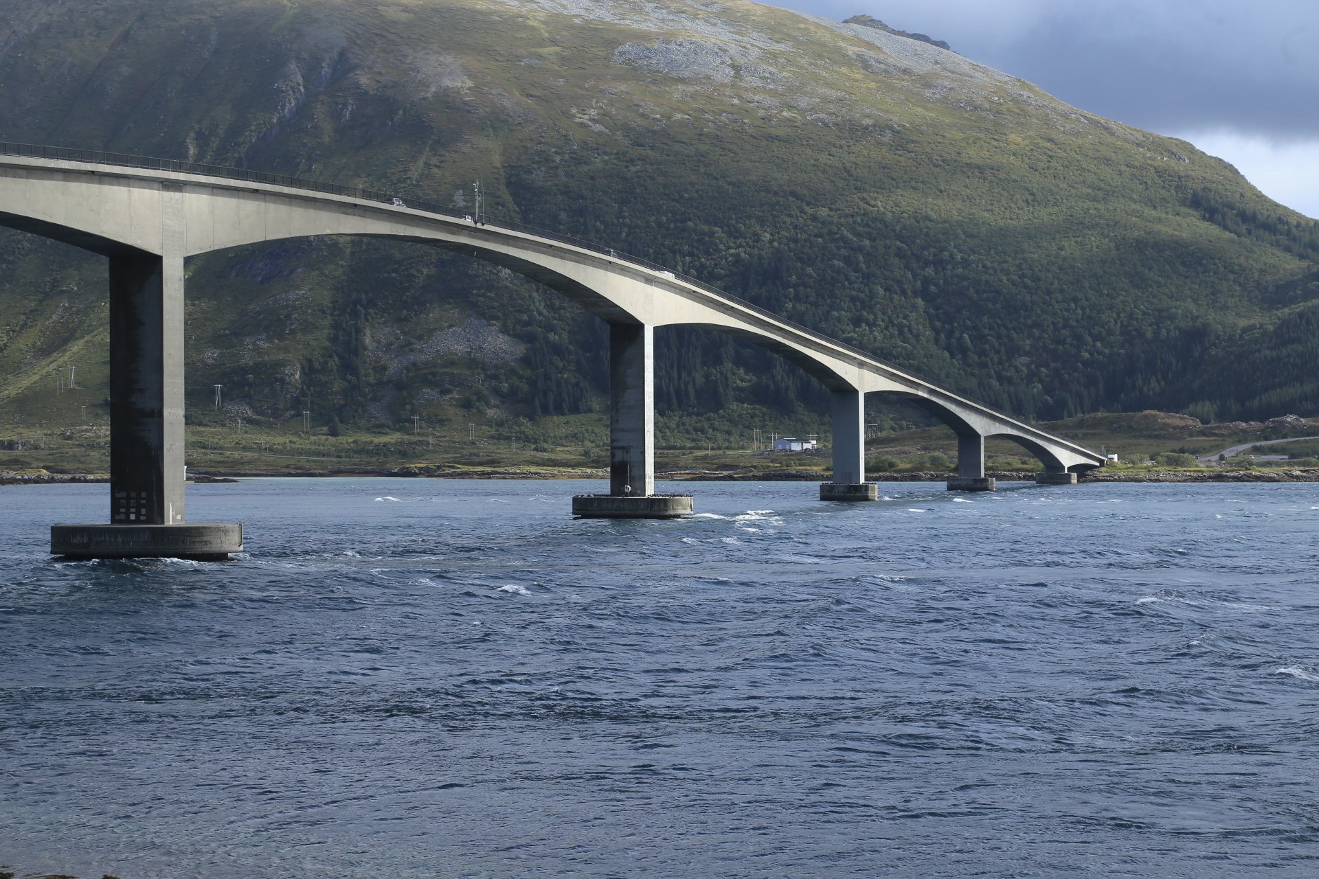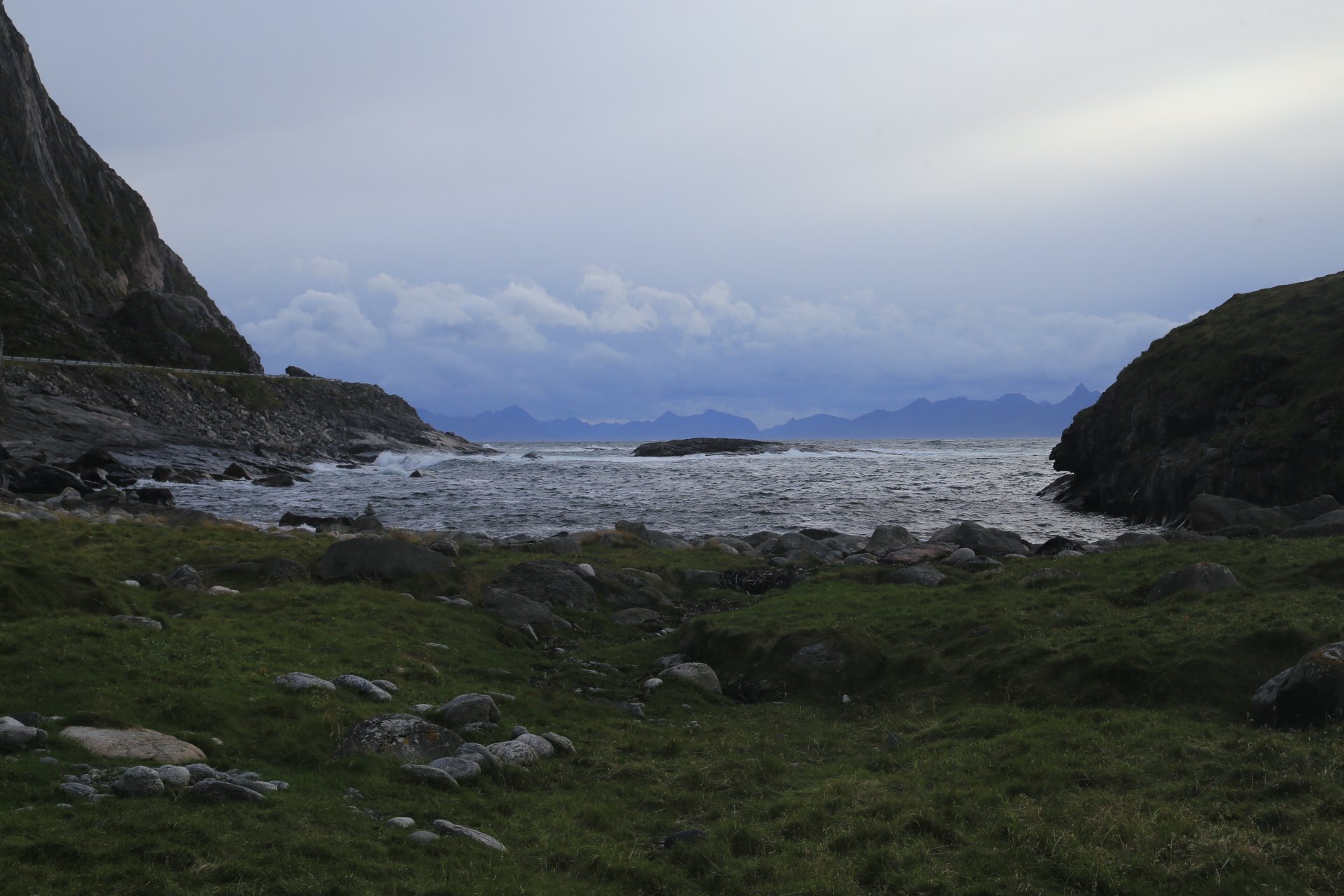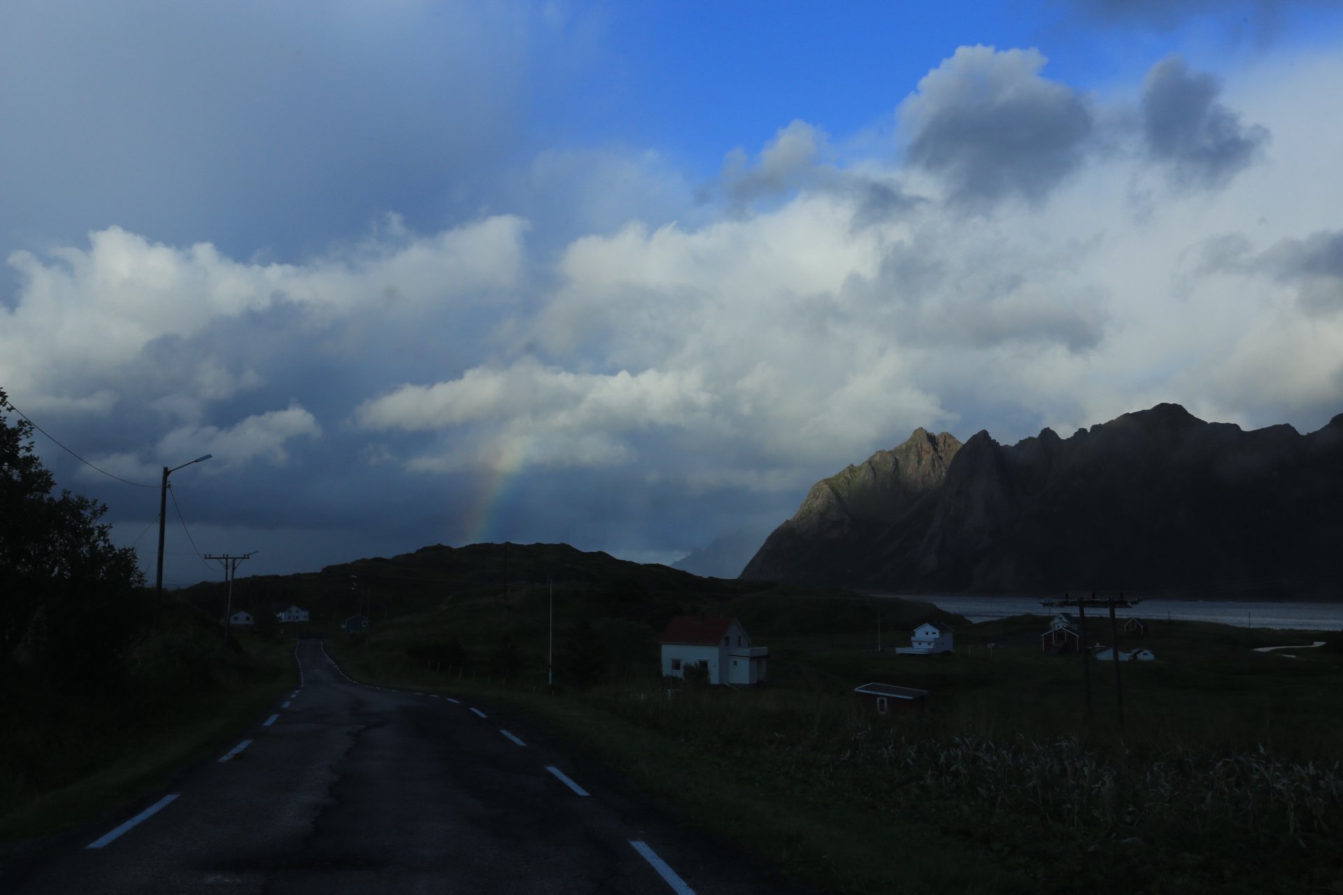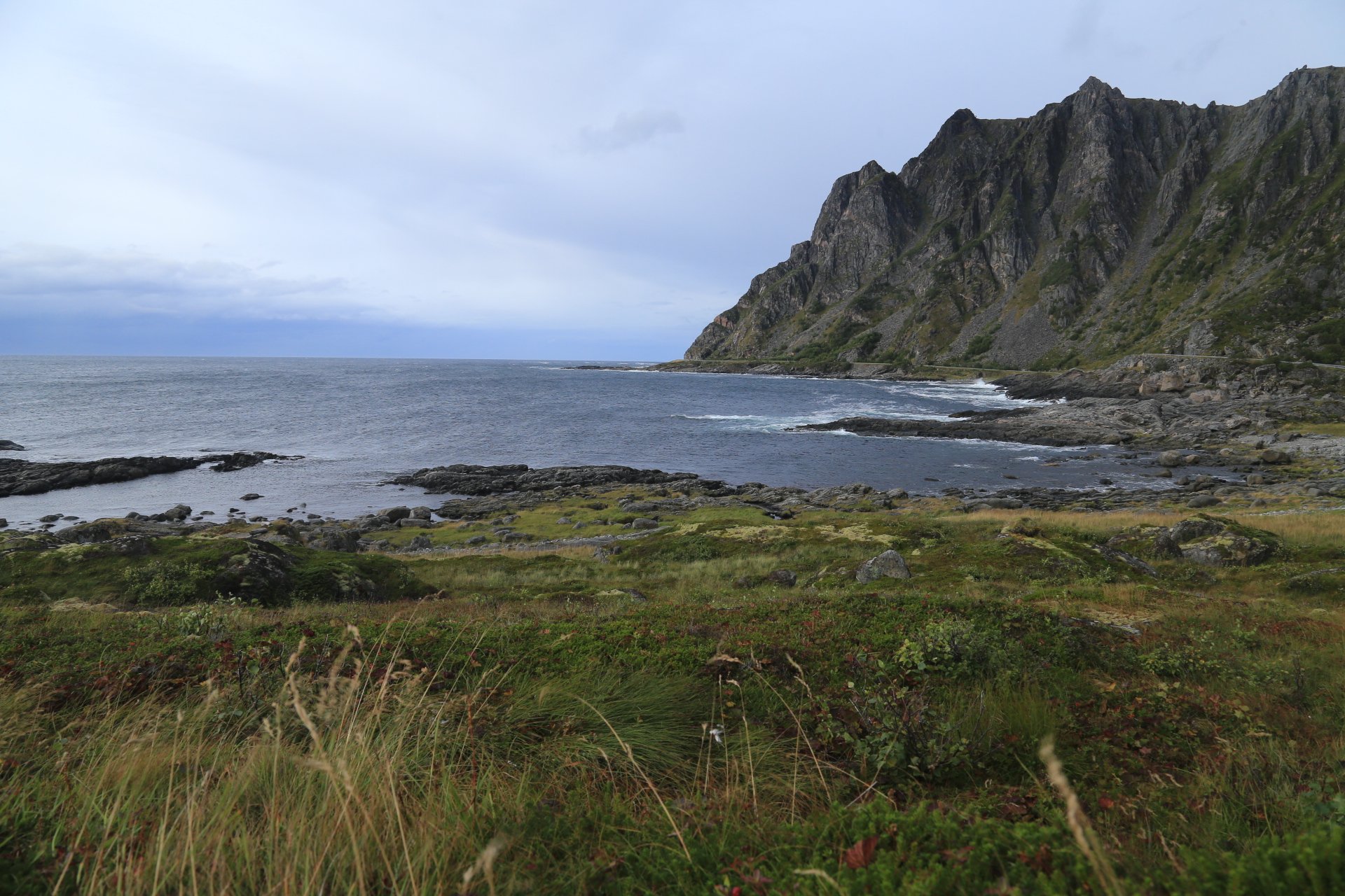 m Ende der kleinen Straße mündet diese wieder auf die E10. Wir halten an und überlegen was wir weiter machen, zumal unser Staubi Durst hat und wir eine Tanke brauchen. Sollen wir 33km zurück nach Svolvaer? Weiter auf derE10, bis zur nächsten Tanke, 68km und dann einen Platz suchen? Hm… vor einen Kilometer war eine Fähre die zu den Vesteralen…. direkt nach der Fähre gibt es wohl eine Tanke… heute rüber, morgen ganz drauf nach Andenes, Mittwoch Whalewatching und am Donnerstag dann nach Narvik fahren wo am Abend unsere große mit dem Flieger landet. Das ist doch einmal ein Plan. mal schauen wann die Fahre kommt, MMotor an und den einen Kilometer zurück, und siehe da, die Fahre liegt da, die Klappe offen und wartet auf uns, nix wie hinein.