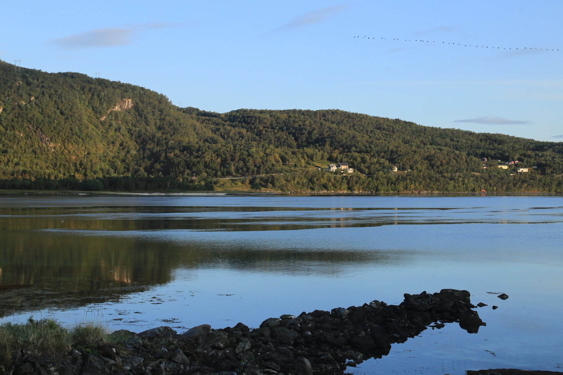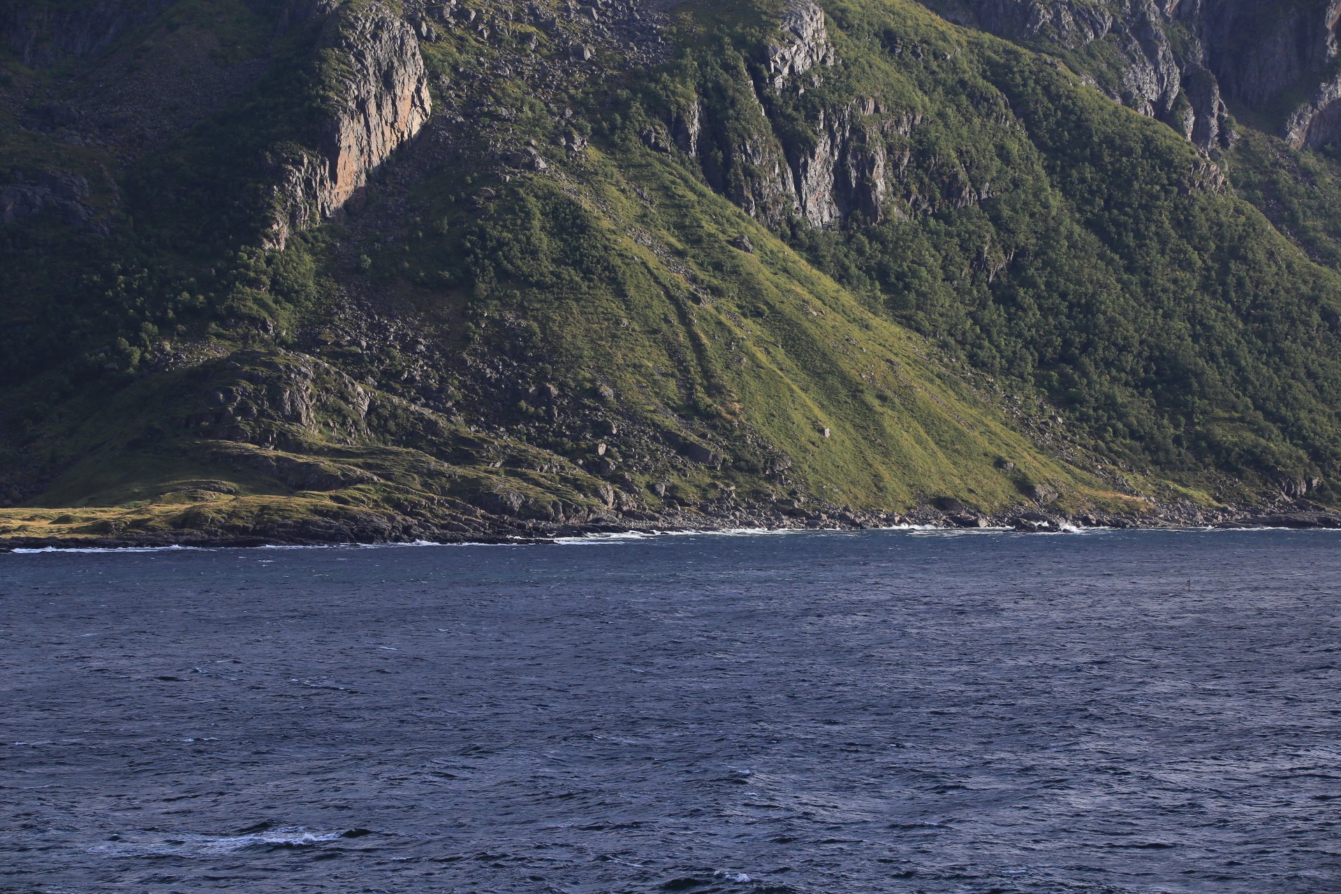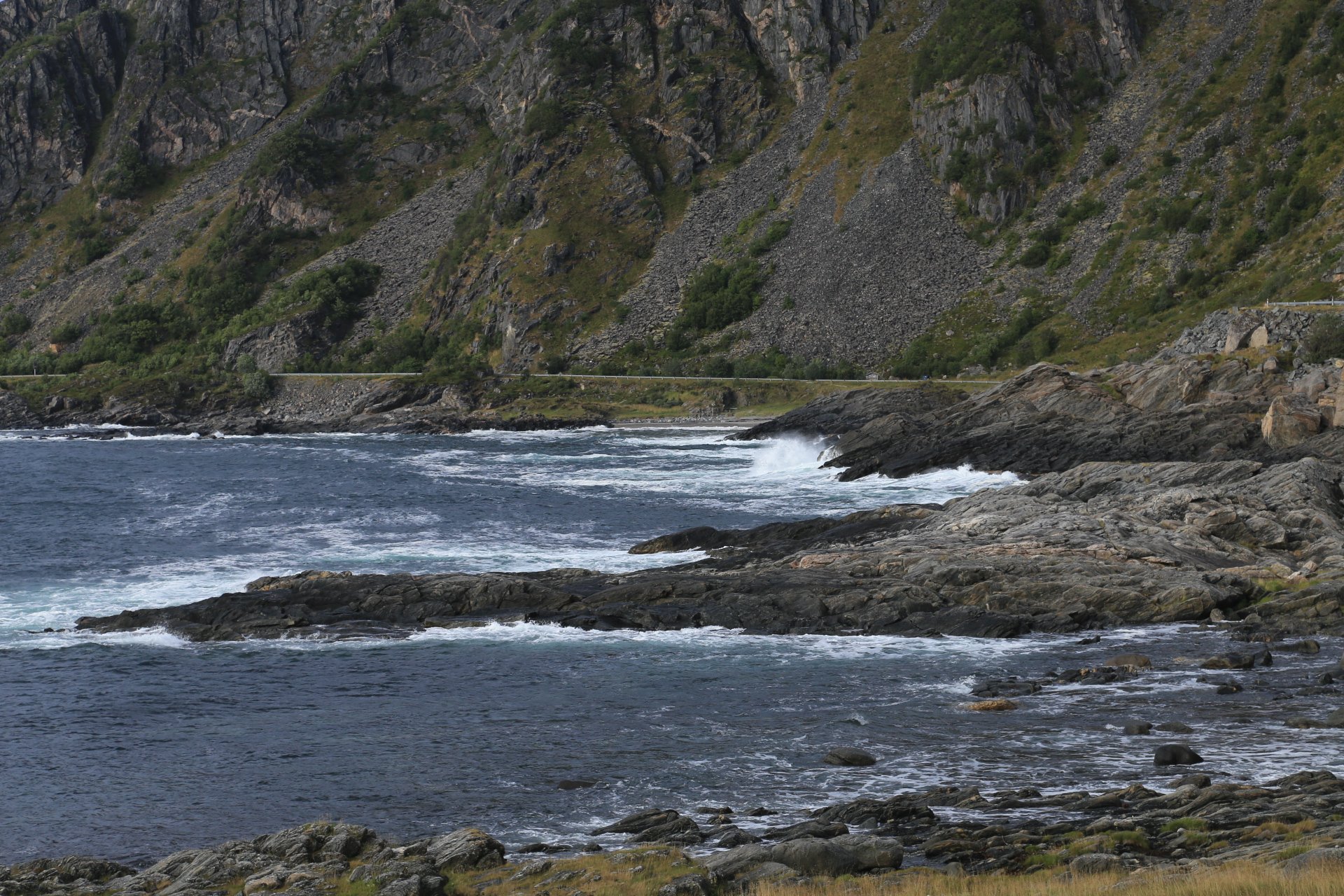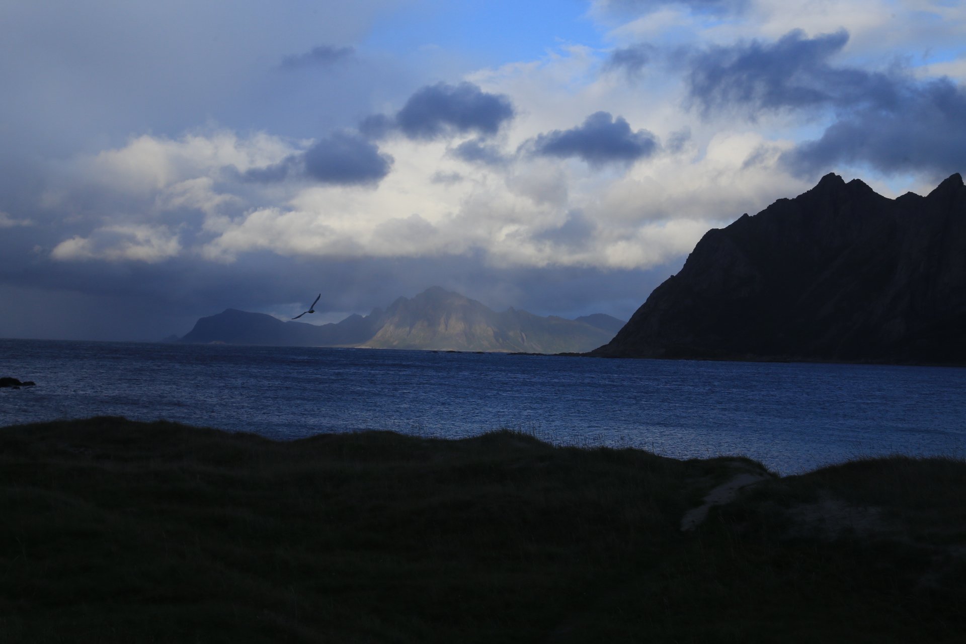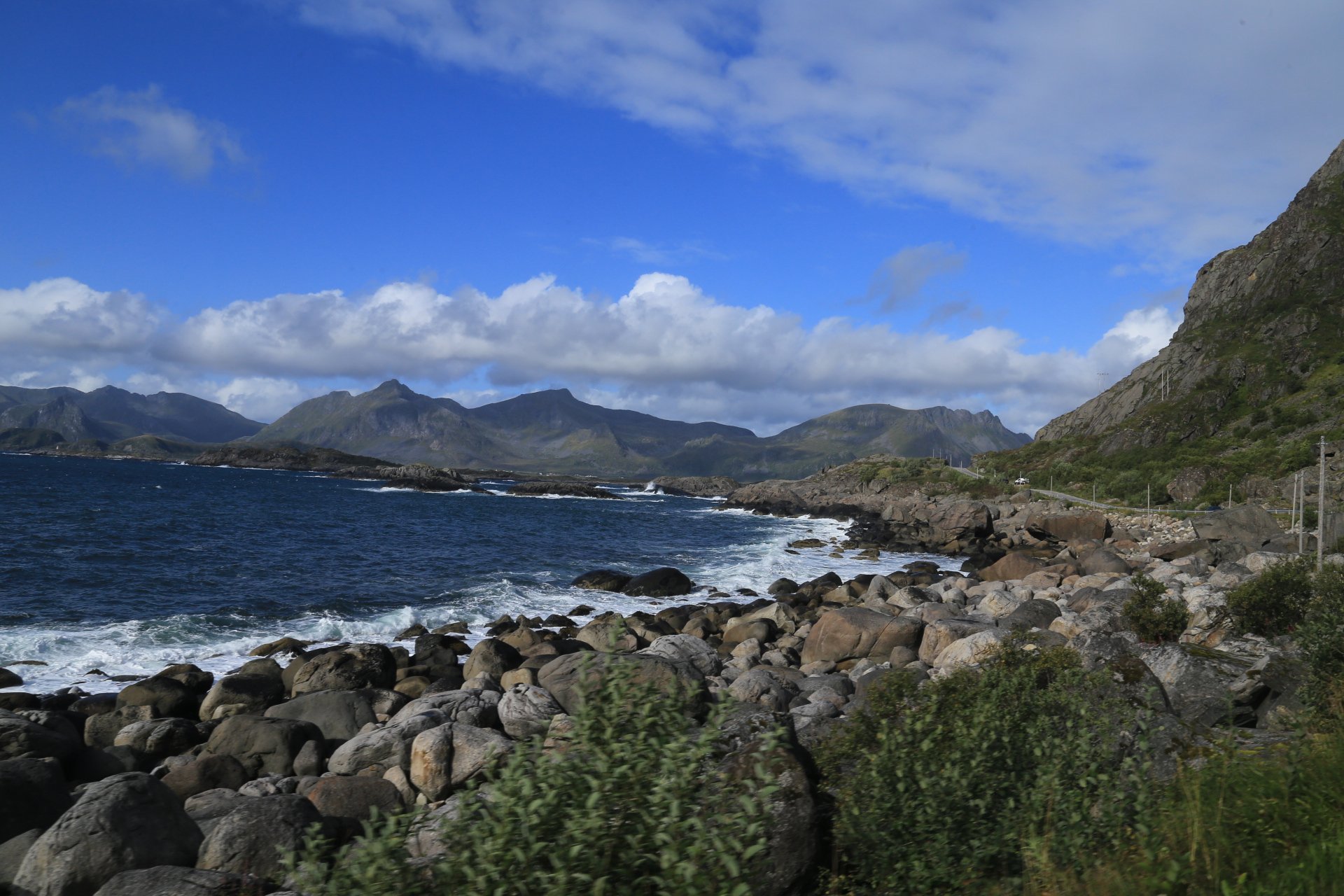 m Ende der kleinen Straße mündet diese wieder auf die E10. Wir halten an und überlegen was wir weiter machen, zumal unser Staubi Durst hat und wir eine Tanke brauchen. Sollen wir 33km zurück nach Svolvaer? Weiter auf derE10, bis zur nächsten Tanke, 68km und dann einen Platz suchen? Hm… vor einen Kilometer war eine Fähre die zu den Vesteralen…. direkt nach der Fähre gibt es wohl eine Tanke… heute rüber, morgen ganz drauf nach Andenes, Mittwoch Whalewatching und am Donnerstag dann nach Narvik fahren wo am Abend unsere große mit dem Flieger landet. Das ist doch einmal ein Plan. mal schauen wann die Fahre kommt, MMotor an und den einen Kilometer zurück, und siehe da, die Fahre liegt da, die Klappe offen und wartet auf uns, nix wie hinein.
