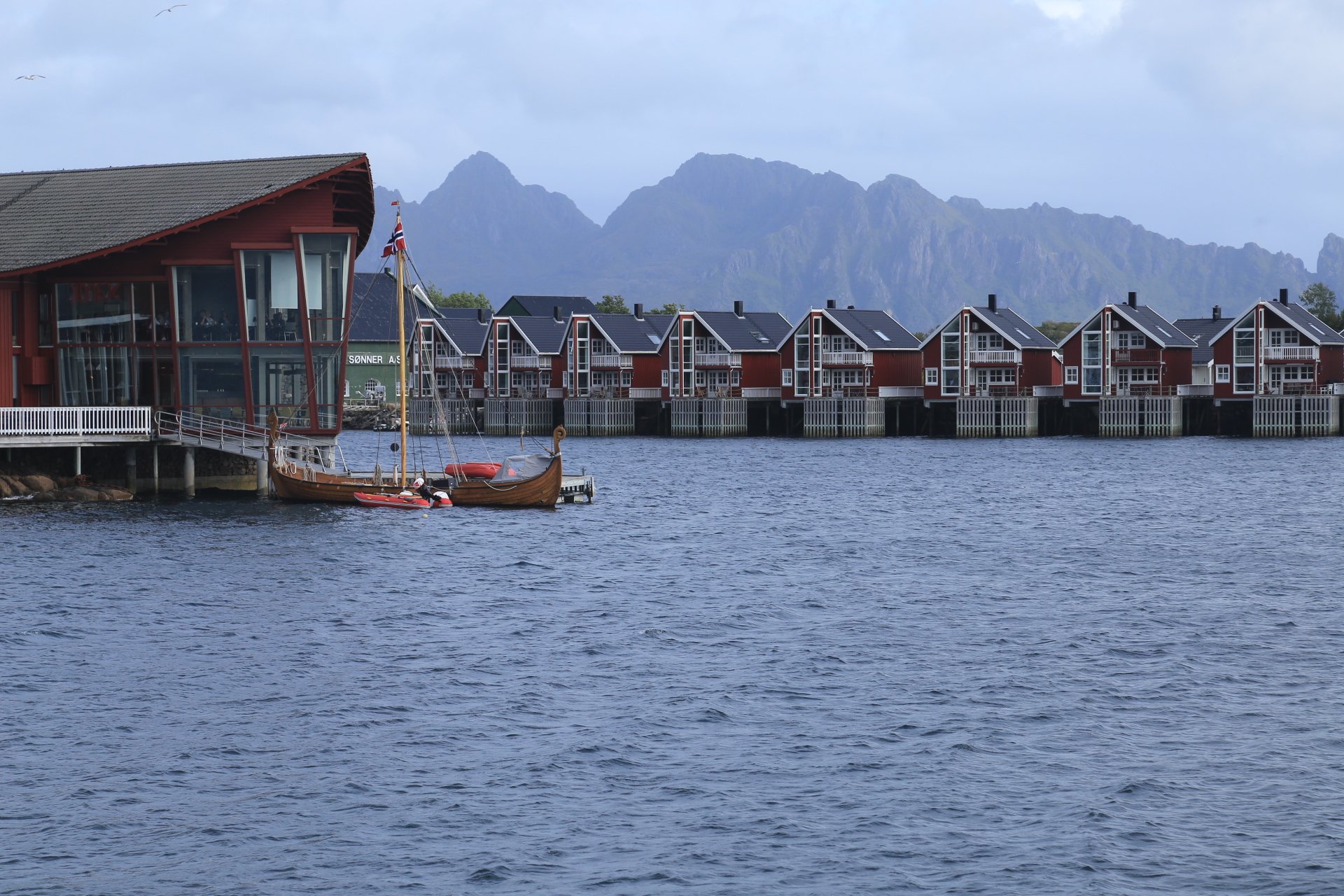 Heute morgen sind wir dann gemütlich weiter gefahren, erstes Ziel war die Stadt Svolvaer. Hier wollten wir eine Bootsfahrt in den Trollfjord machen, aber mal wieder hat uns dabei das Wetter eine Strich durch die Rechnung gemacht. Der Wind ist zu stark und kommt aus der gefährlichsten Richtung Südwest, heute fährt hier keiner raus. Die Aussichten für morgen… stärkerer Wind. Nun gut dann eben Kaffee und Zimtschnecke.