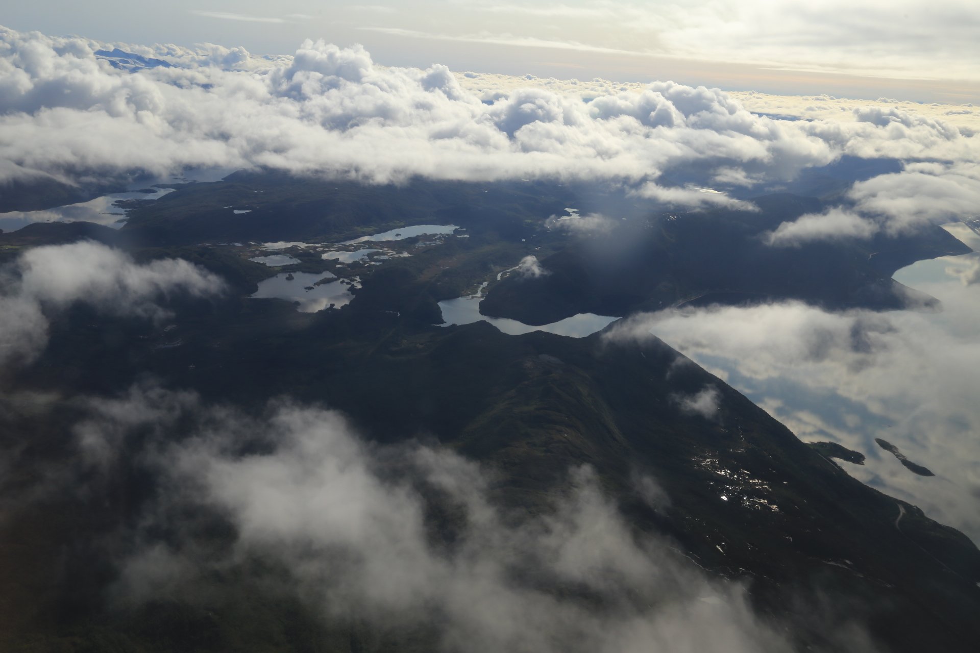Dann ist es soweit und wir verabschieden uns von unseren großen, nicht ohne eine gewisse Wehmut, lieber würden wir die nächsten Wochen unseren Bus selber nach Hause fahren, aber wir wünschen ihr alles gute, eine schöne Zeit und checken ein.Pünktlich hebt unser Flieger ab und wir genießen die letzten Blicke auf Norwegen bevor es unter den Wolken verschwindet.