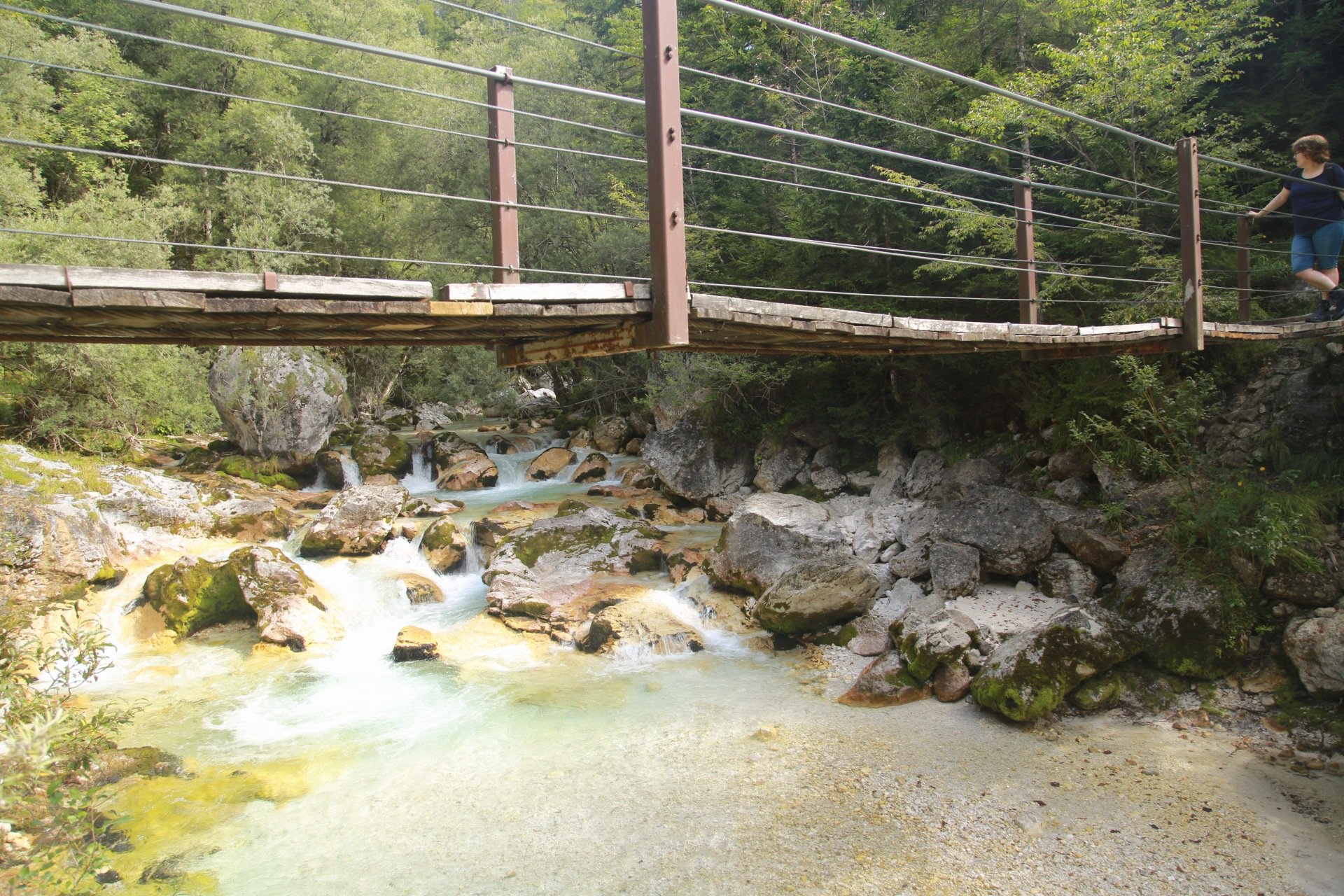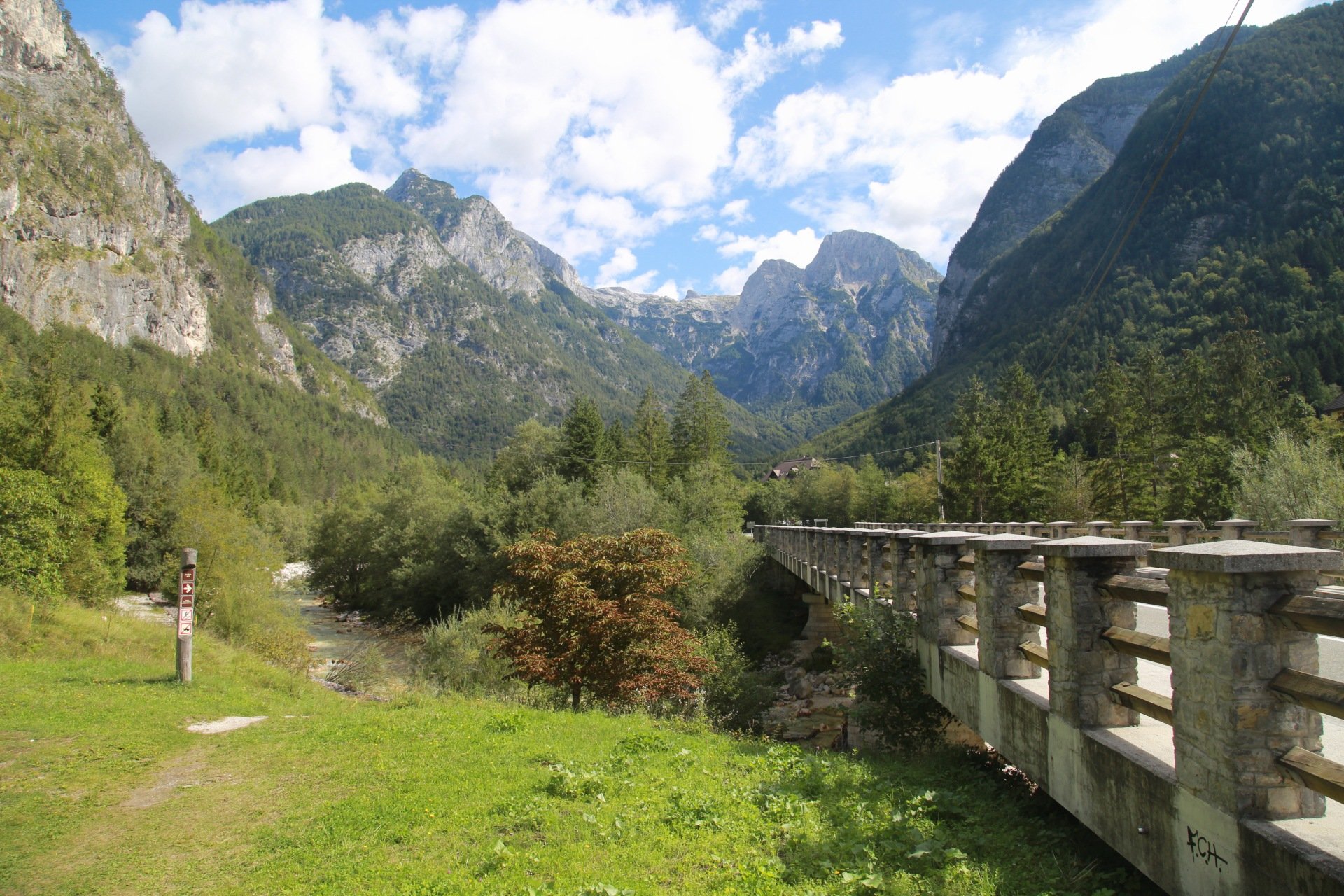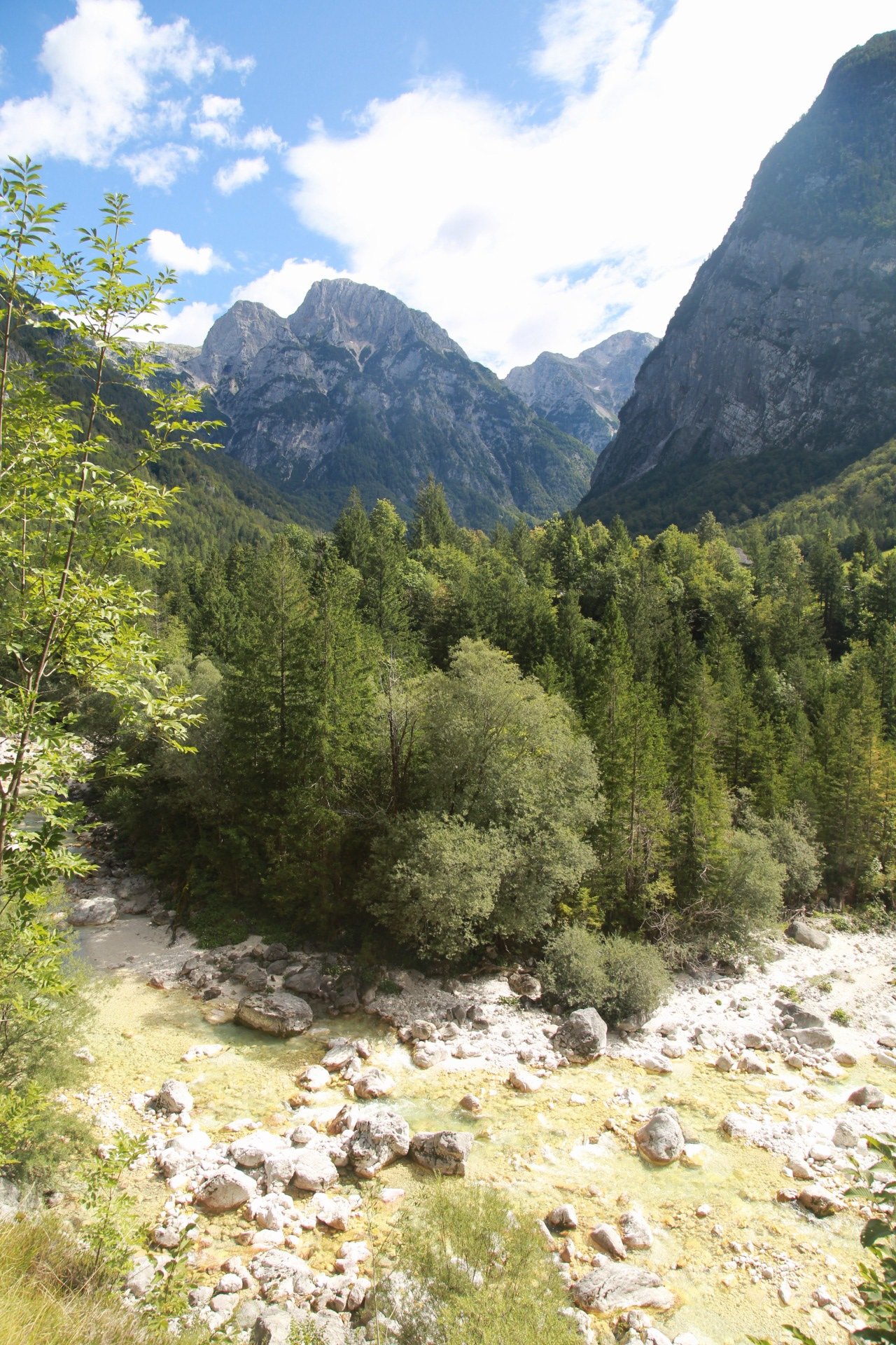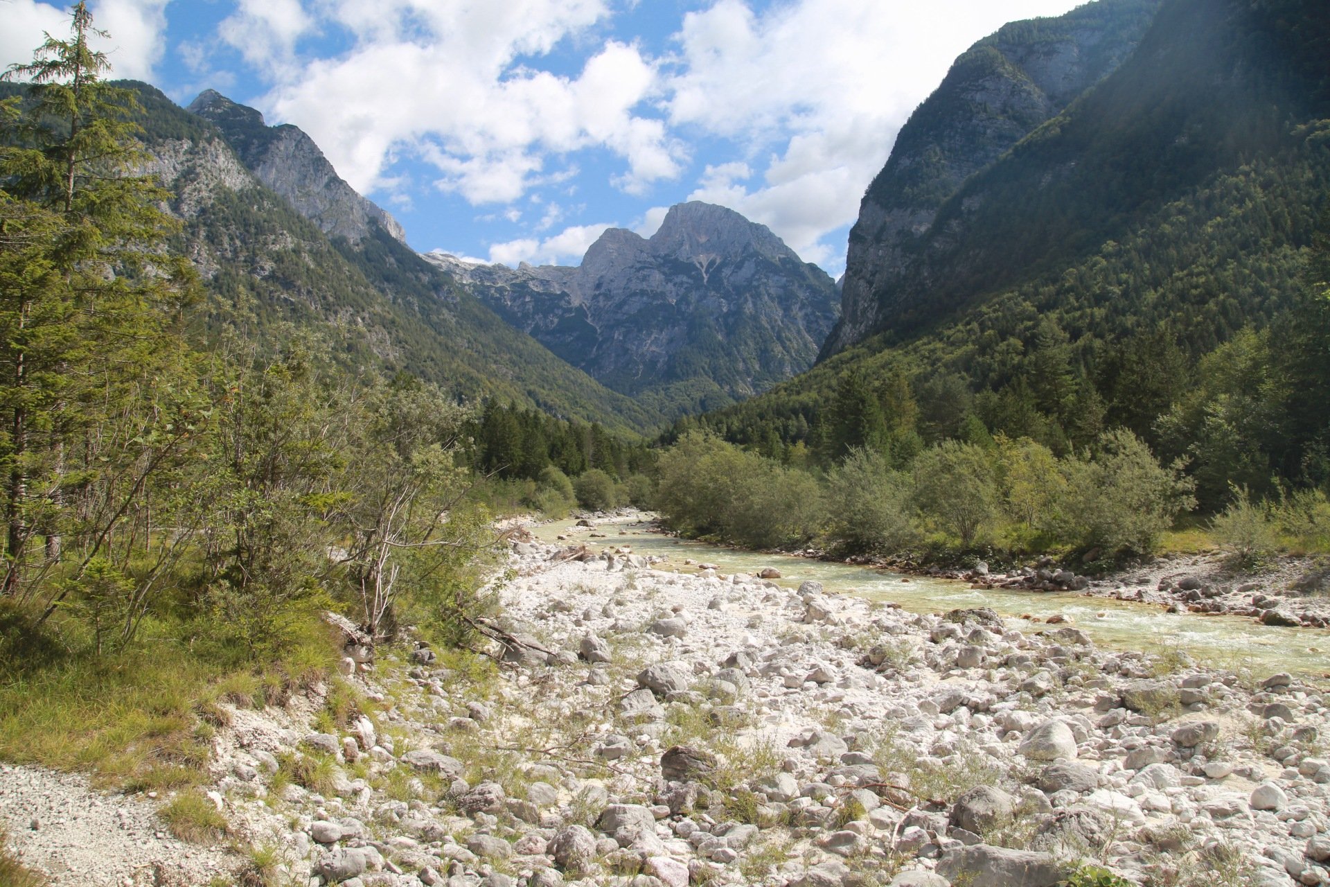 Bietet immer wieder wunderschöne Ausblicke auf die Soca und die umliegenden Berge.