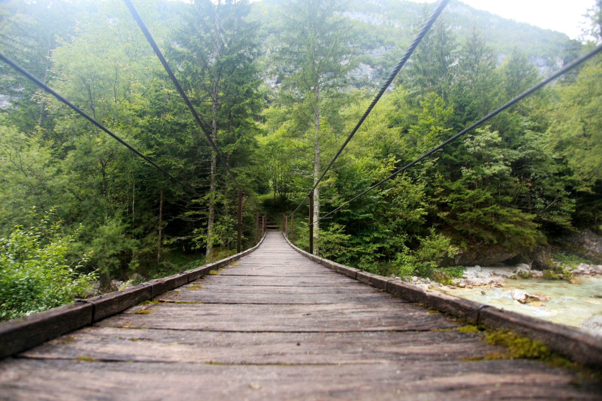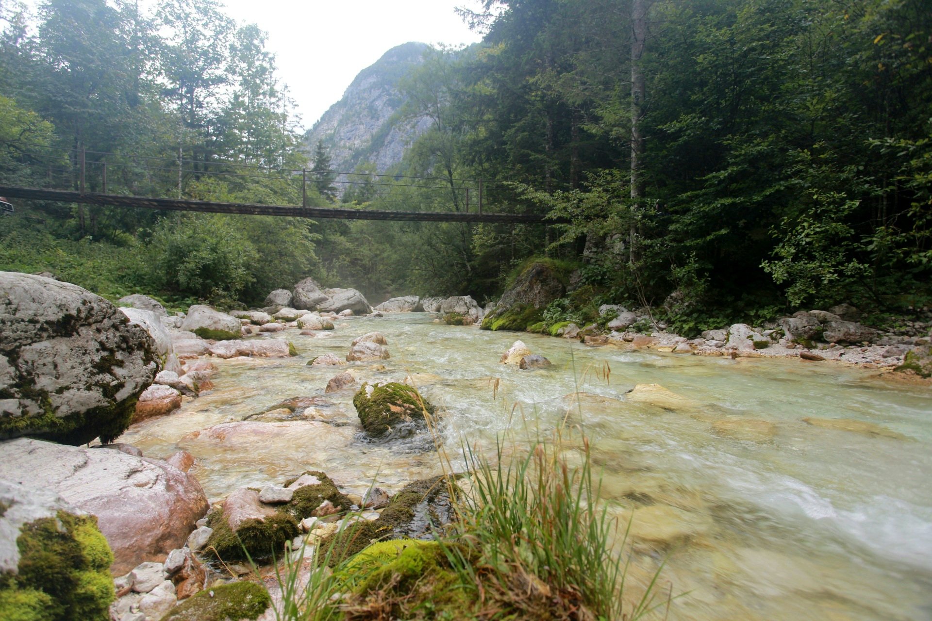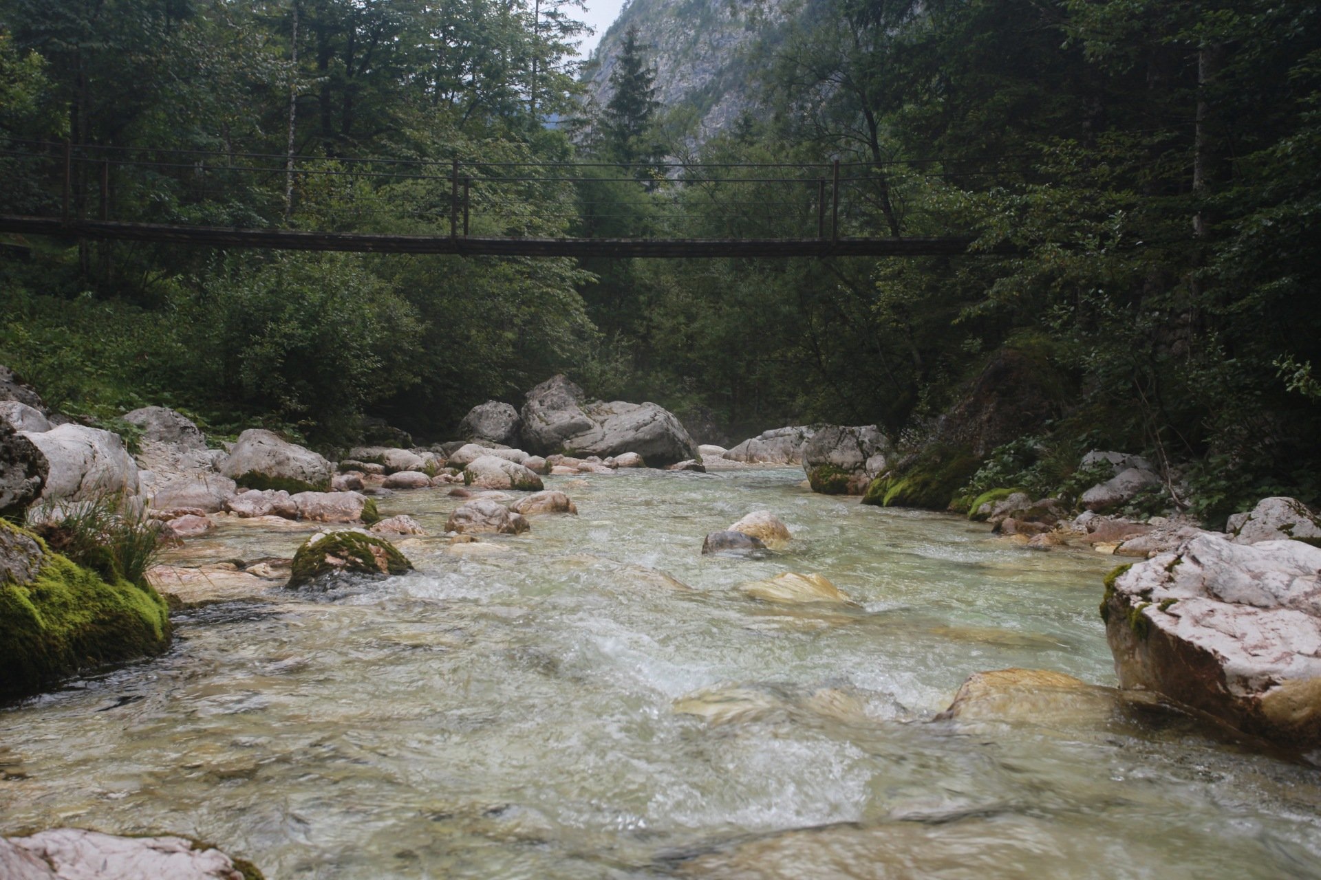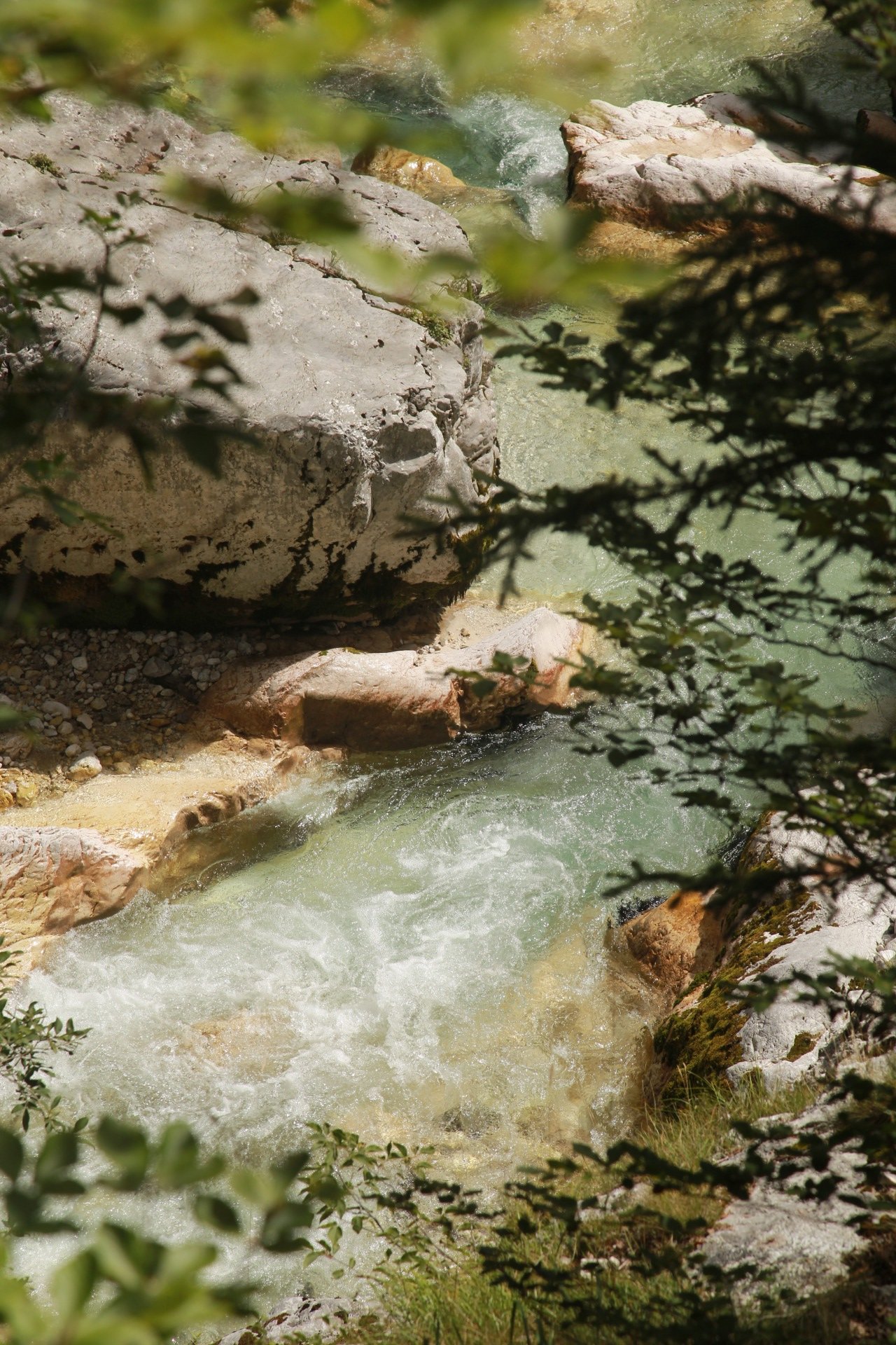 Bietet immer wieder wunderschöne Ausblicke auf die Soca und die umliegenden Berge.