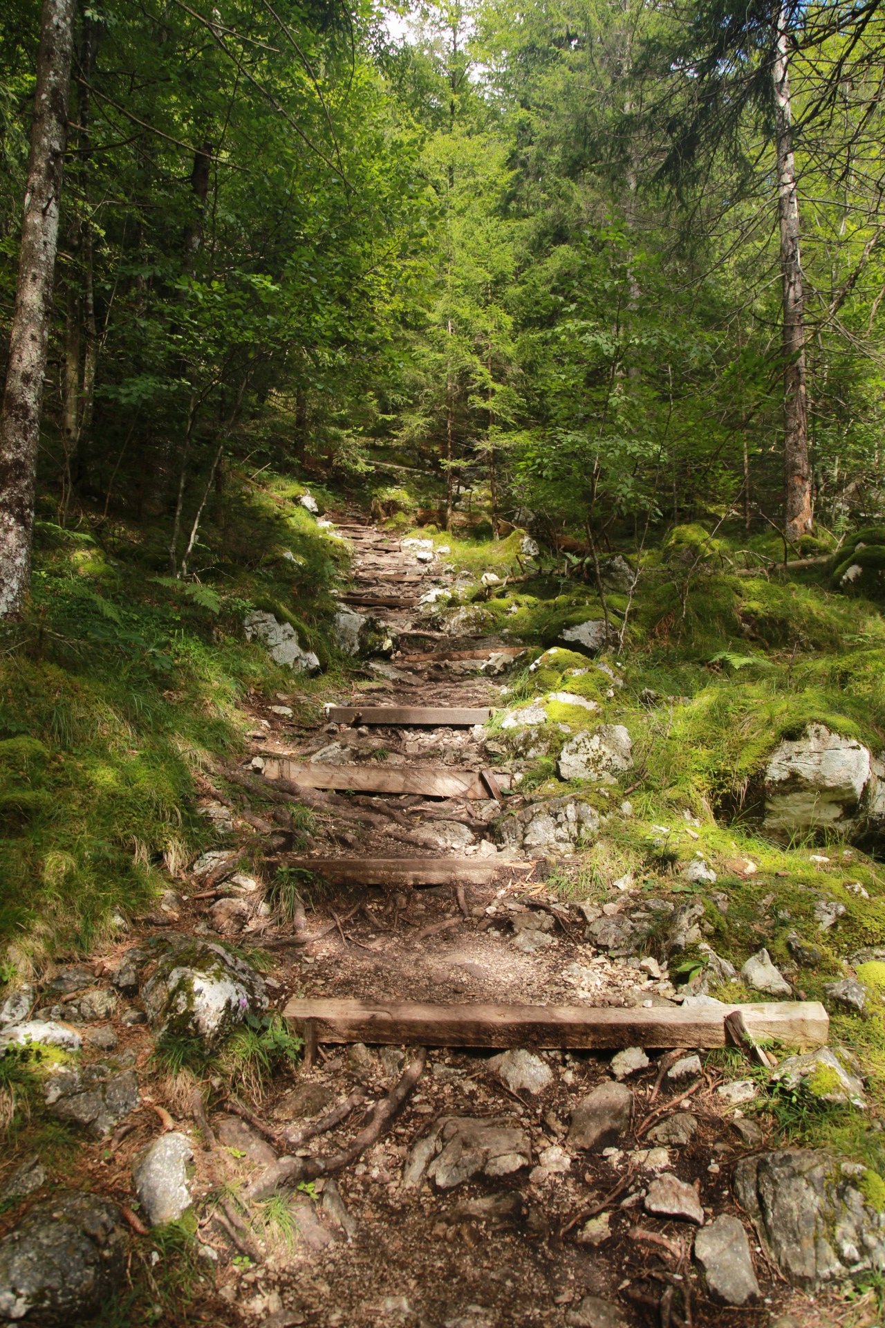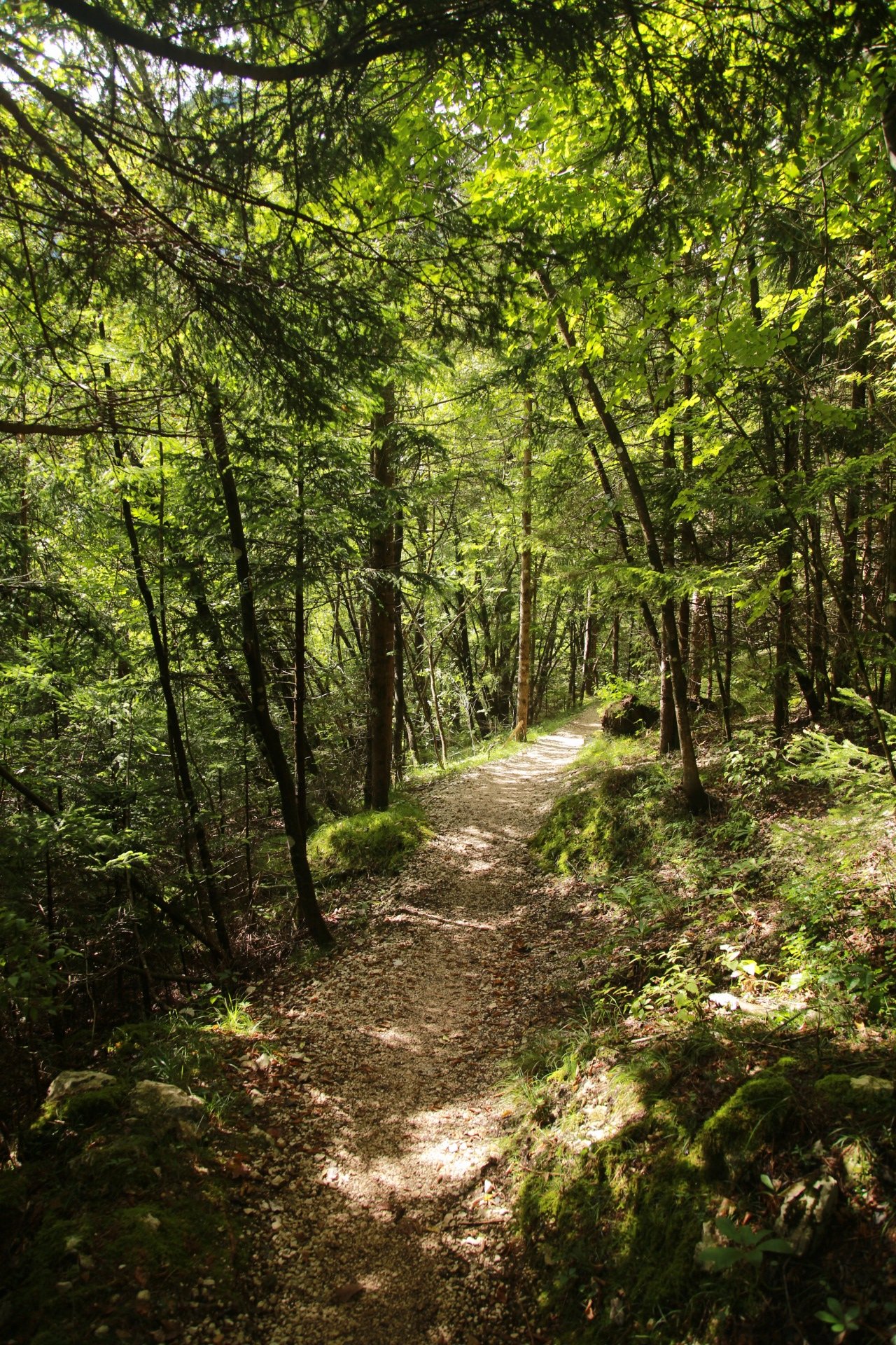 Wir müssen vom Campingplatz aus nur einmal über die Brücke und können dann direkt auf den Trail einbiegen. Der Weg schlängelt sich abwechslungsreich am Ufer durch den Wald entlang.