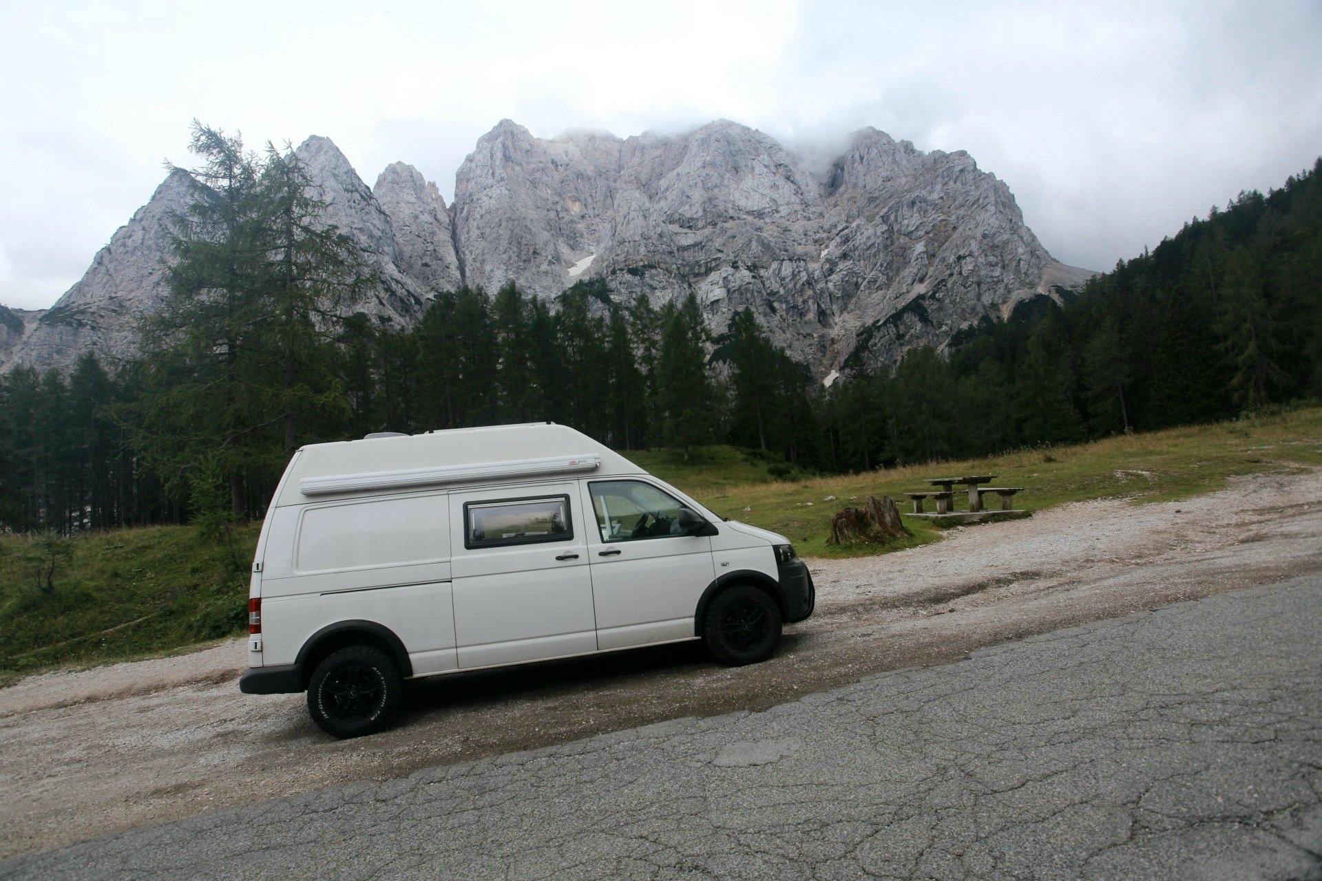Immerhin beginnt der Tag, entgegen des Wetterberichts, mit blauen Himmel und Sonnenschein. So können wir unser erstes Frühstück in diesem Urlaub vor unserem Bus genießen und nebenbei den Tag planen. Wir wollen das Wetter ausnutzen und einen Teil des Soca Trail gehen, der von der Quelle bis nach Bovec ca. 24 KM lang ist. Wir wollen direkt von userem Campinplatz aus talaufwärts starten, so das wir auf dem Rückweg mehr bergab gehen können.