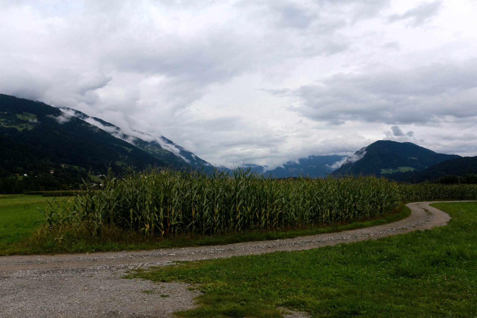 Nach 4 Kilometern geht der Trail auf die Straße über und man muss neben dieser weiter laufen. Wir beschliessen, das wir lieber den Rückweg antreten. Auch hinblicklich des Himmels an dem sich die Woken sammeln. Immerhin ist die Regenwahrscheinlichkeit bei über 40 Prozent. Es soll der regenreichste Tag mit Schauern und Gewittern sein. Schönes Wetter soll erst ab morgen kommen.