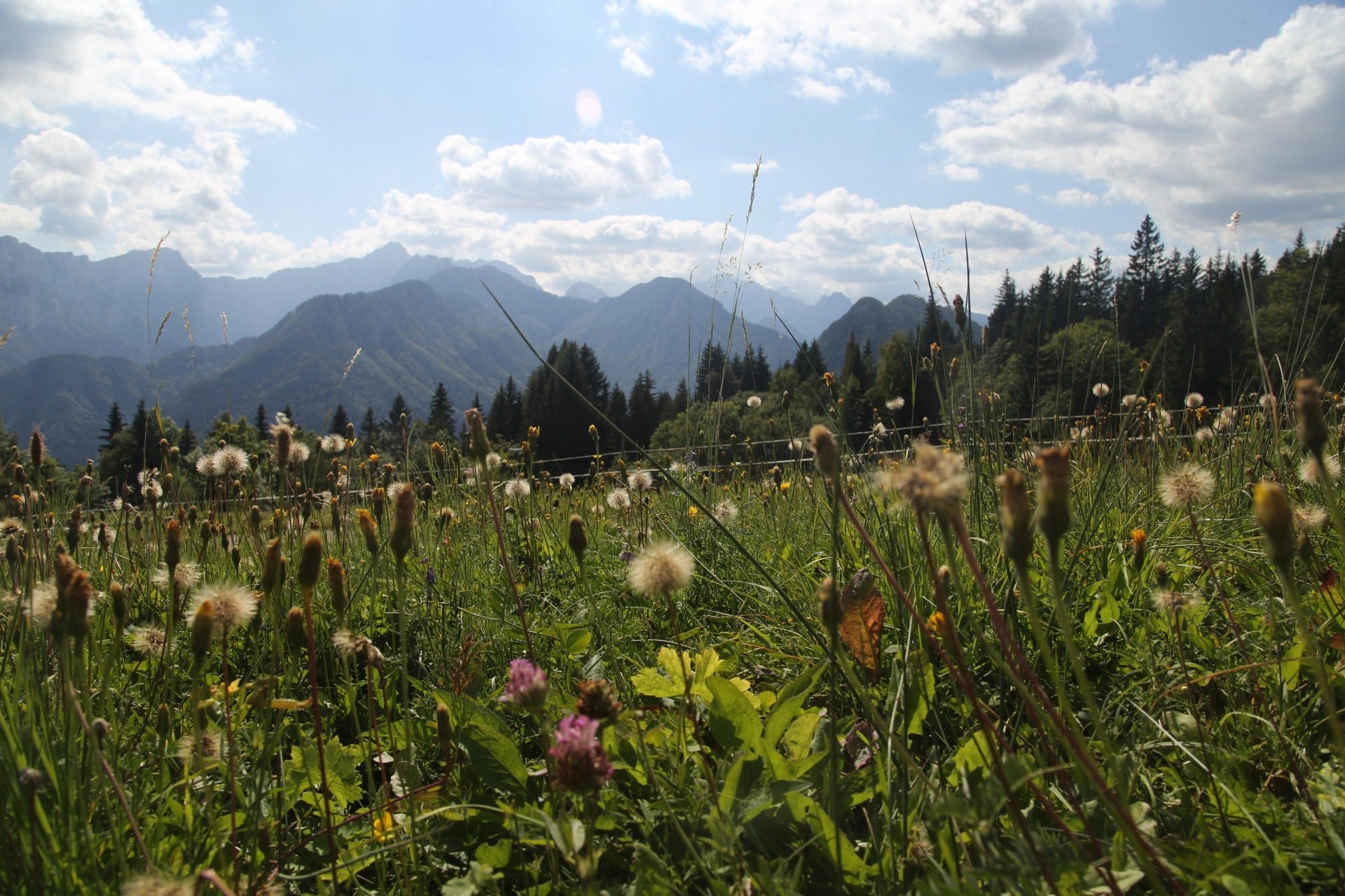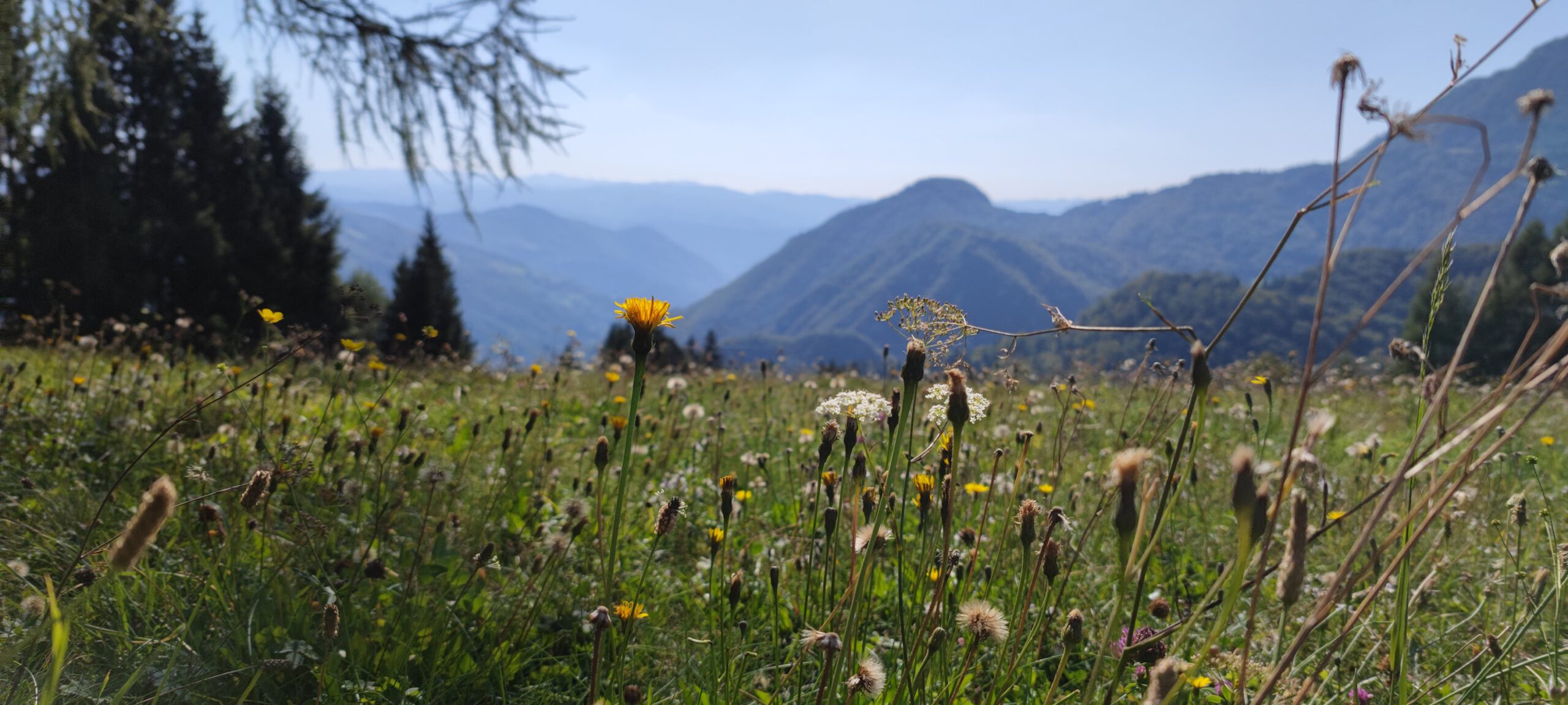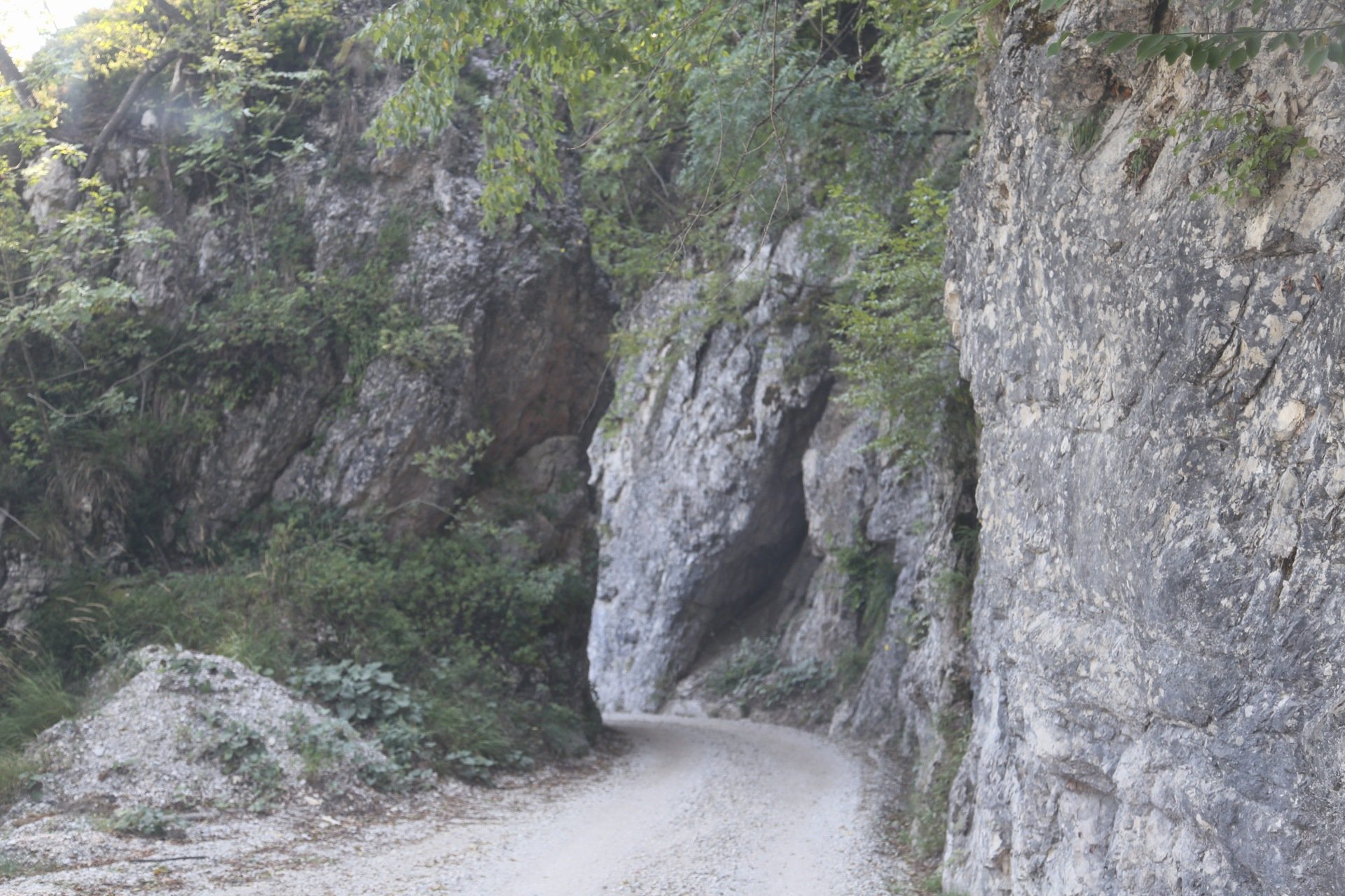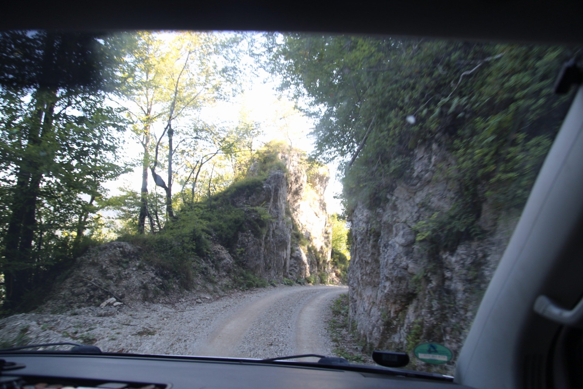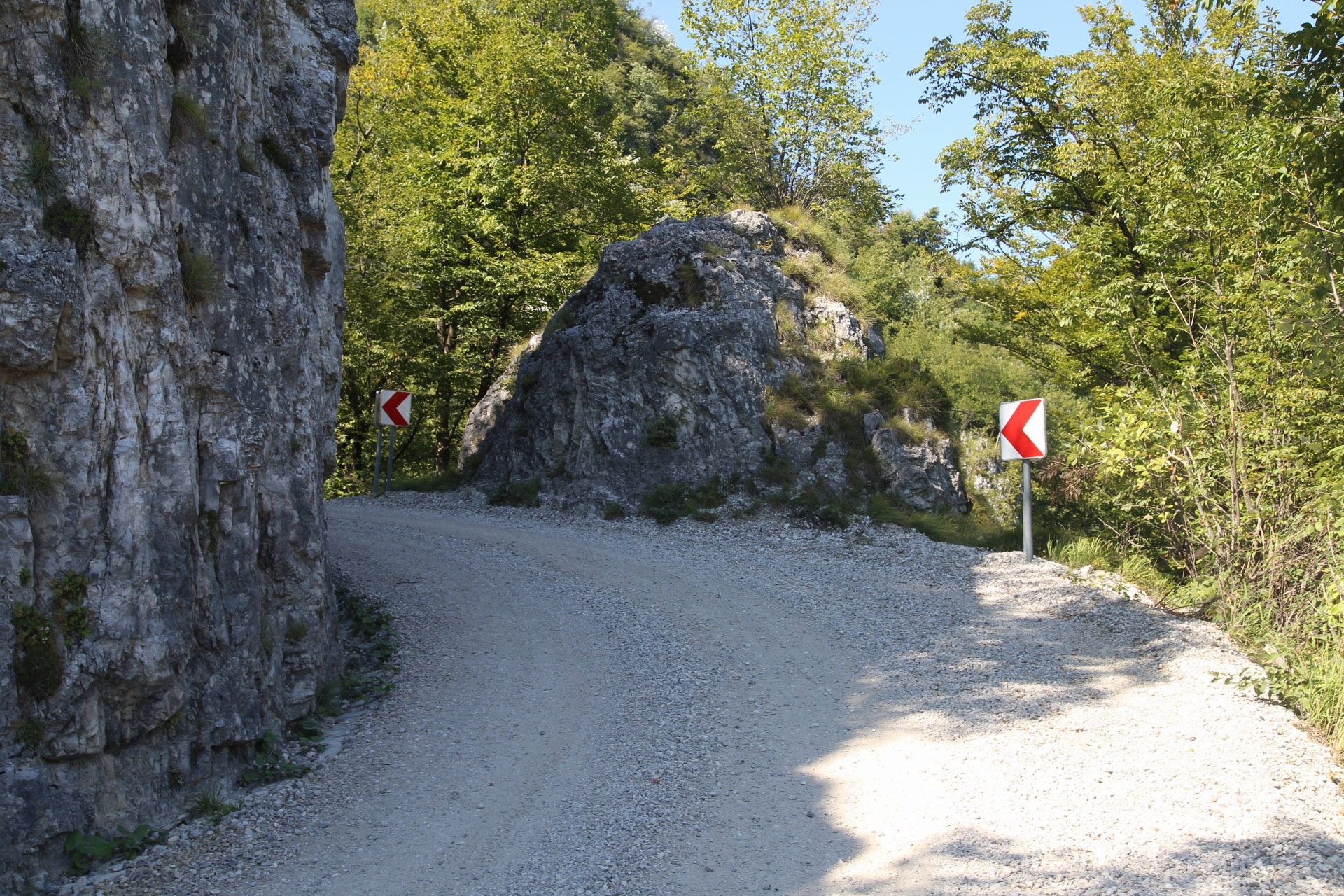 Sind wir bei der Anreise am Montagabend so ziemlich alleine auf dem Pass unterwegs gewesen, so ist heute am Samstagvormittag die Hölle los. Oben auf dem Pass ist alles zugeparkt, inklusive einer Fahrspur der schmalen Straße. Zu allem Überfluss kommt uns hier auch noch ein Reisebus entgegen. Jeder fährt erstmal in die Engstellen rein, bis nichts mehr geht und wartet darauf das der andere sich in Luft auflöst. Nachdem wir uns einfach nicht in Luft auflösen wollen und wir lang genug gestikulieren, fängt man halt doch an ein wenig rückwärts zu rangieren, bis ich mich Zentimeterweise vorbeischieben kann um Luft zu schaffen damit sich der Knoten aus Blech lösen kann. Ein ruhiges Frühstücksplätzchen werden wir hier nicht finden, so fahren wir langsam weiter. Das Caos begleitet uns noch eine ganze Weile. Halb Slowenien scheint sich hier auf dem Pass zu versammeln und es kommen uns beim Runterfahren immer mehr Autos entgegen, die auf den Pass wollen. So gleicht unsere Abreise ehr einer Flucht. In 30 Jahren Alpenfahren habe ich bisher nicht ansatzweise ein vergleichbares Caos gesehen.