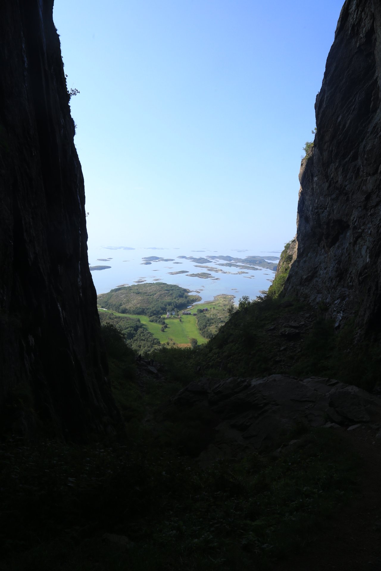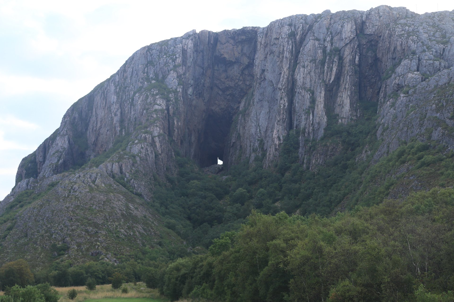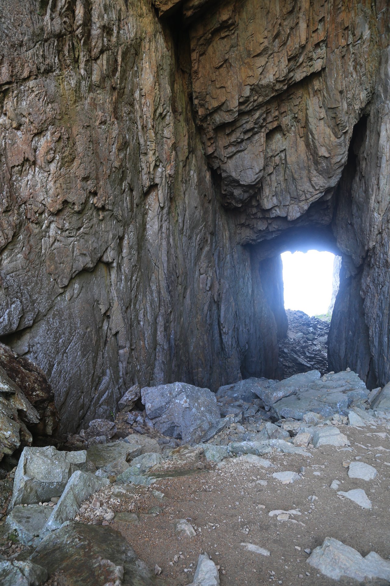 Immer den Weg um den Berg folgend, bis ich das berühmte Loch im Berg sehen kann.