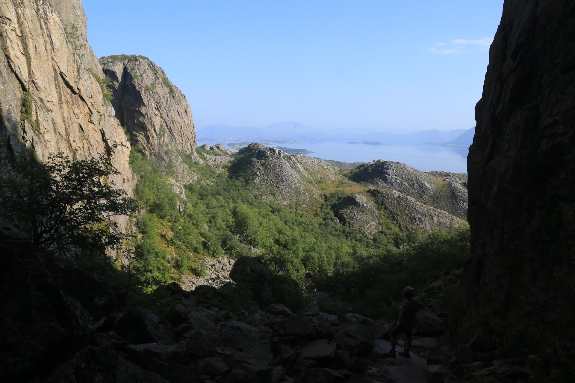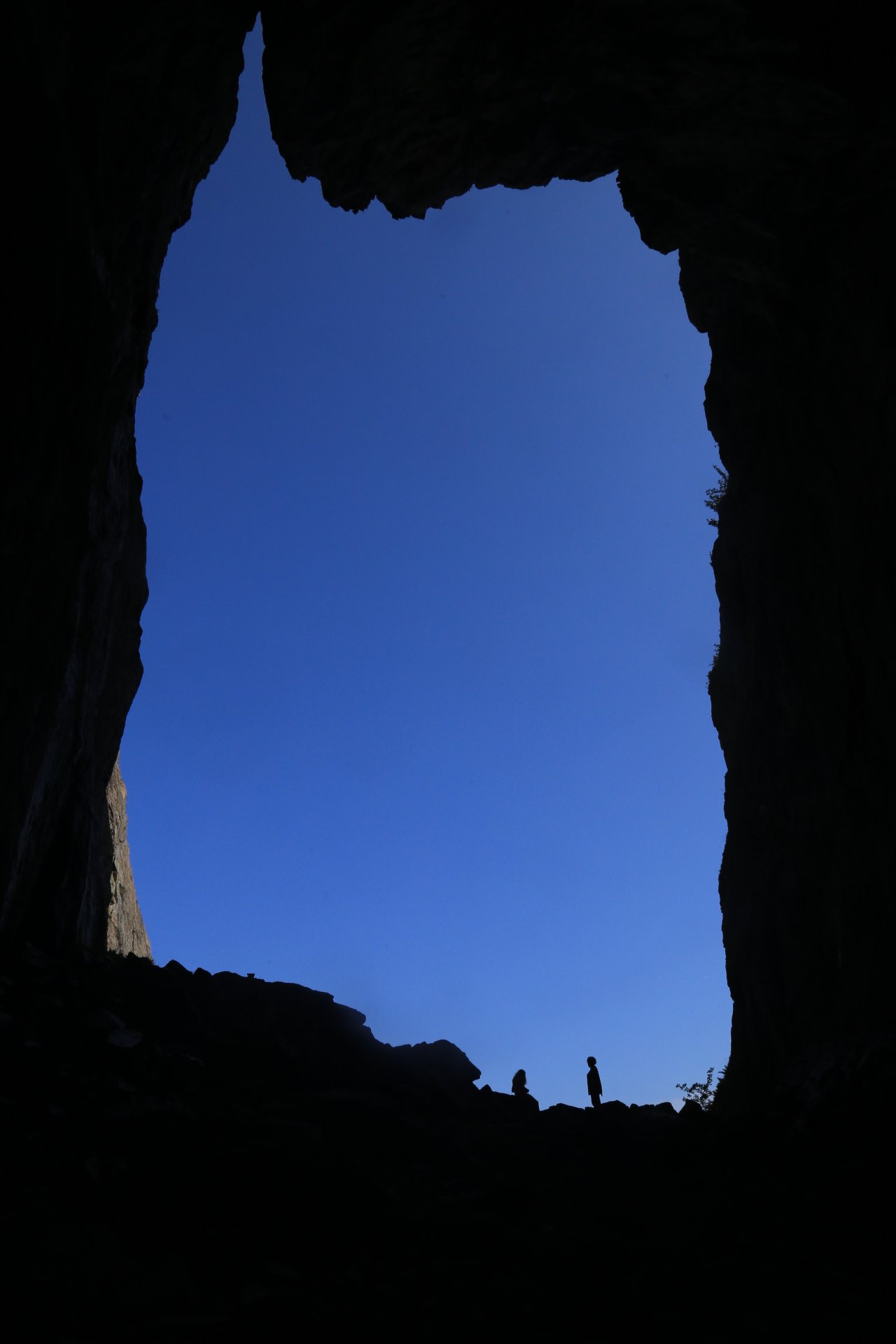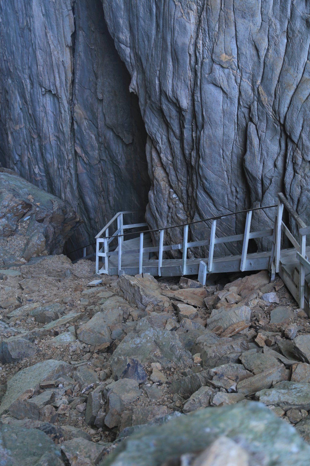 Immer den Weg um den Berg folgend, bis ich das berühmte Loch im Berg sehen kann.